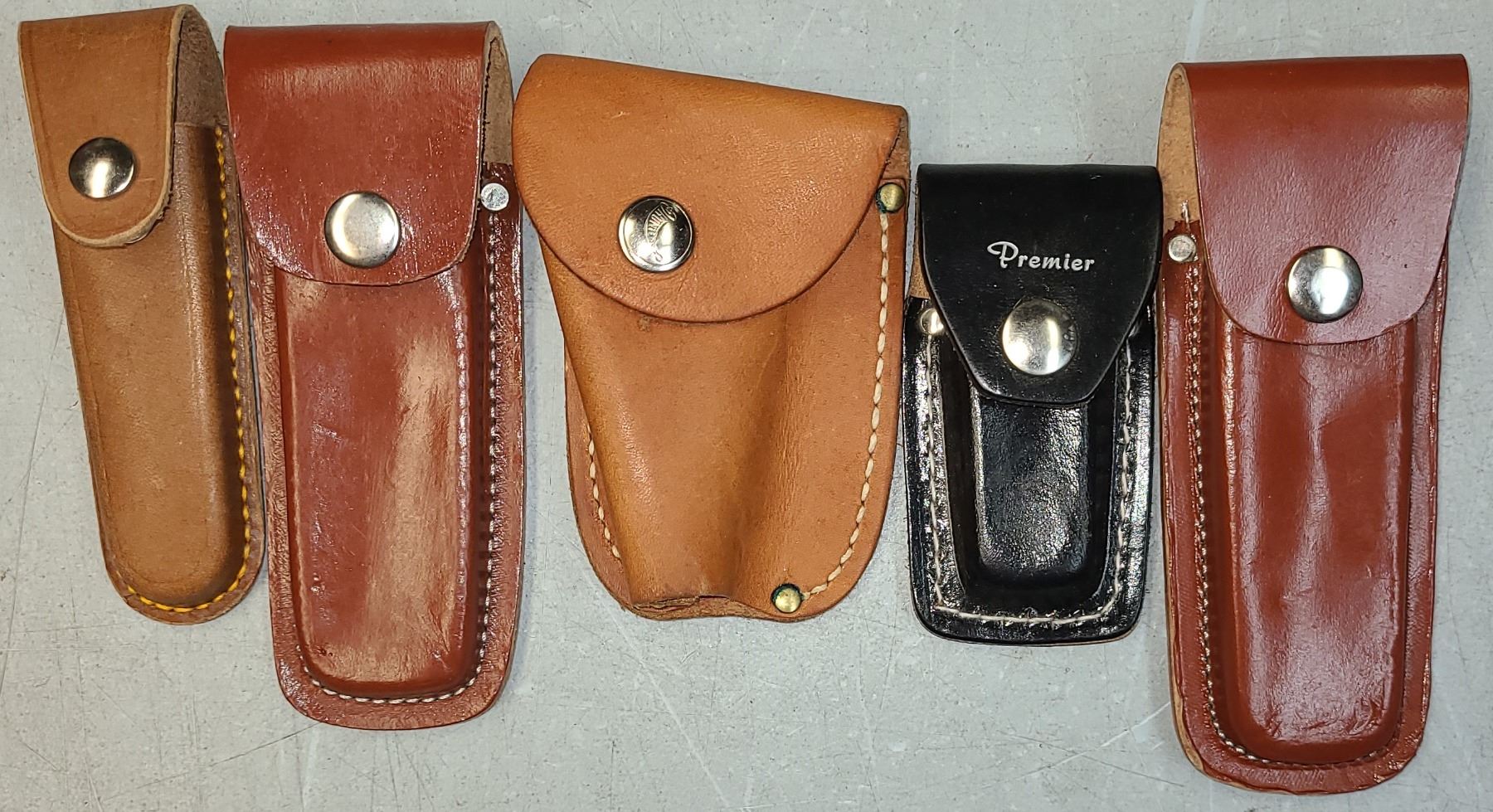 Leather Knife Pouch Lot as Shown - 5 Pouches - Hunter & Premier