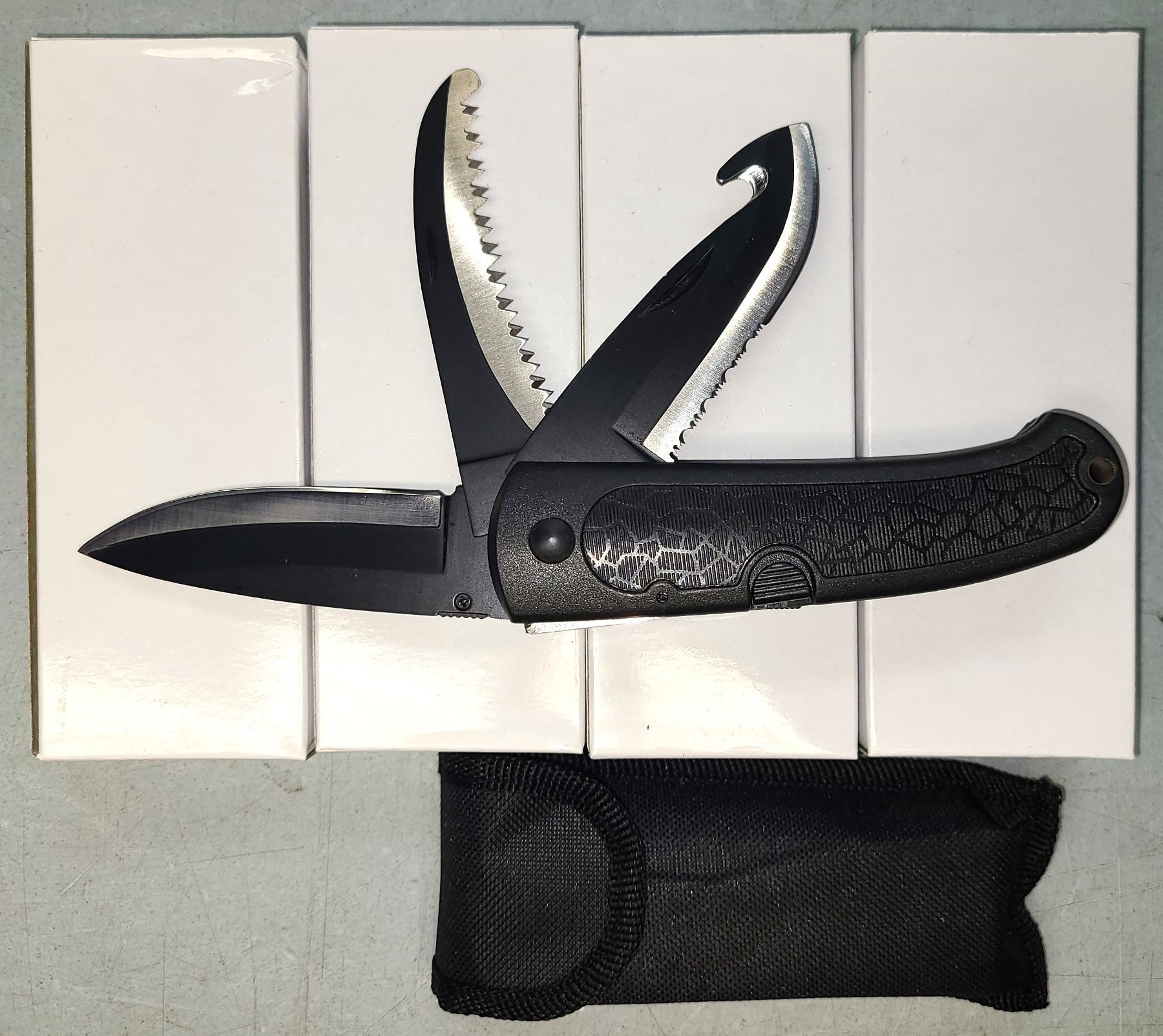 Field Knife 3 Blades - Gut Hook Straight & Saw Blades - LOT of 4 NEW knives