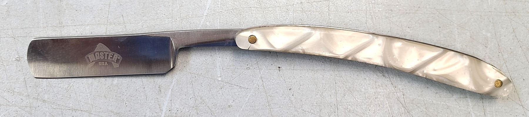 Lot 406 Cut-Throat Razor by Master USA - Traditional Pearl Handle 4.5 in Blade - NEW