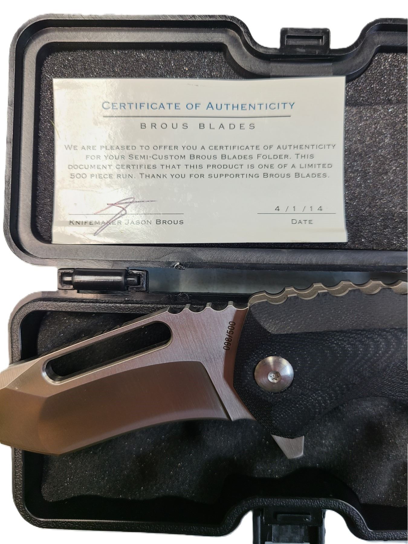 Lot 410 Brous Blades Reloader Custom Folding Knife #98 / 500 - Made in USA
