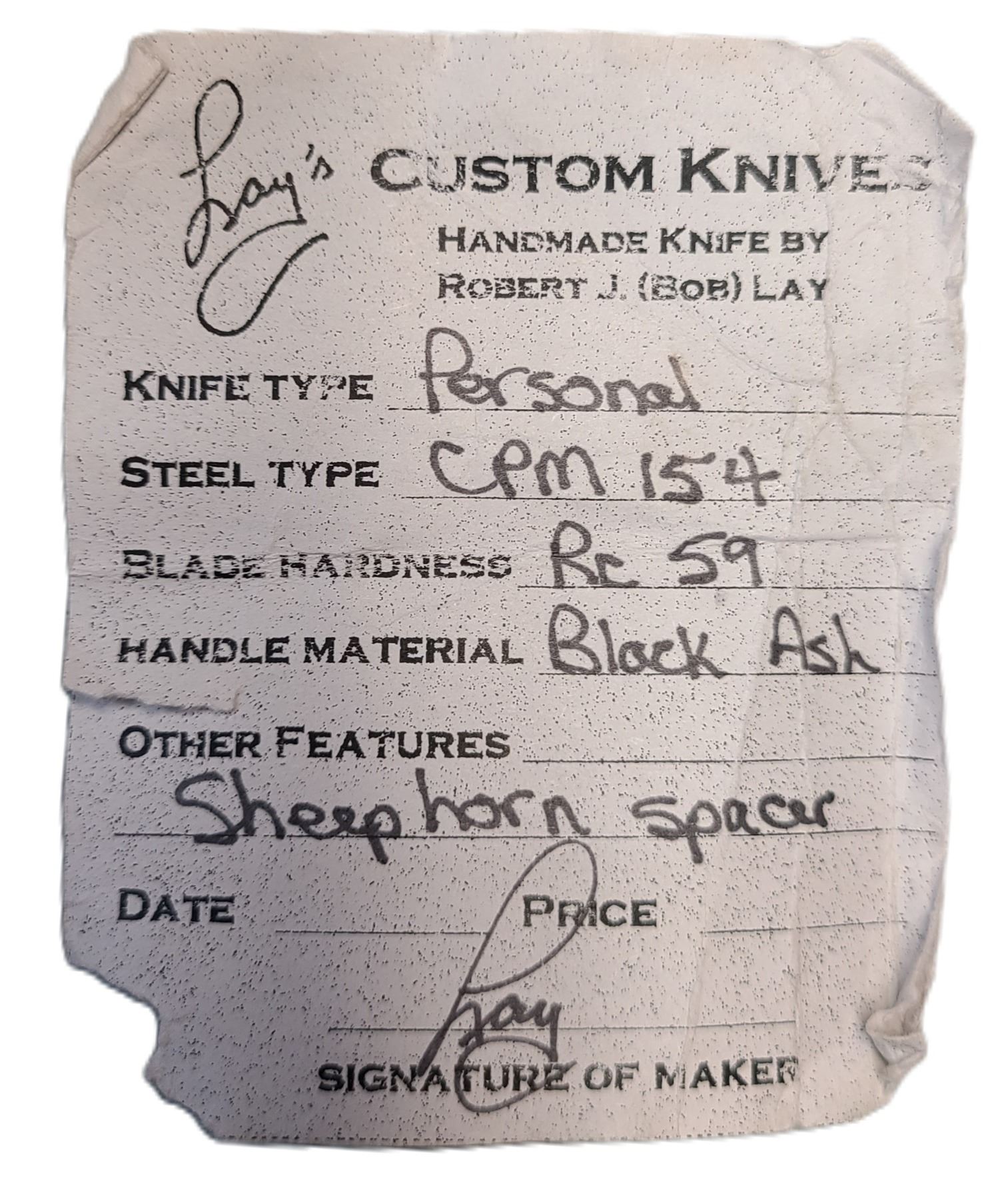 Robert (Bob) Lay Personal Model Fixed Blade Custom Made Knife