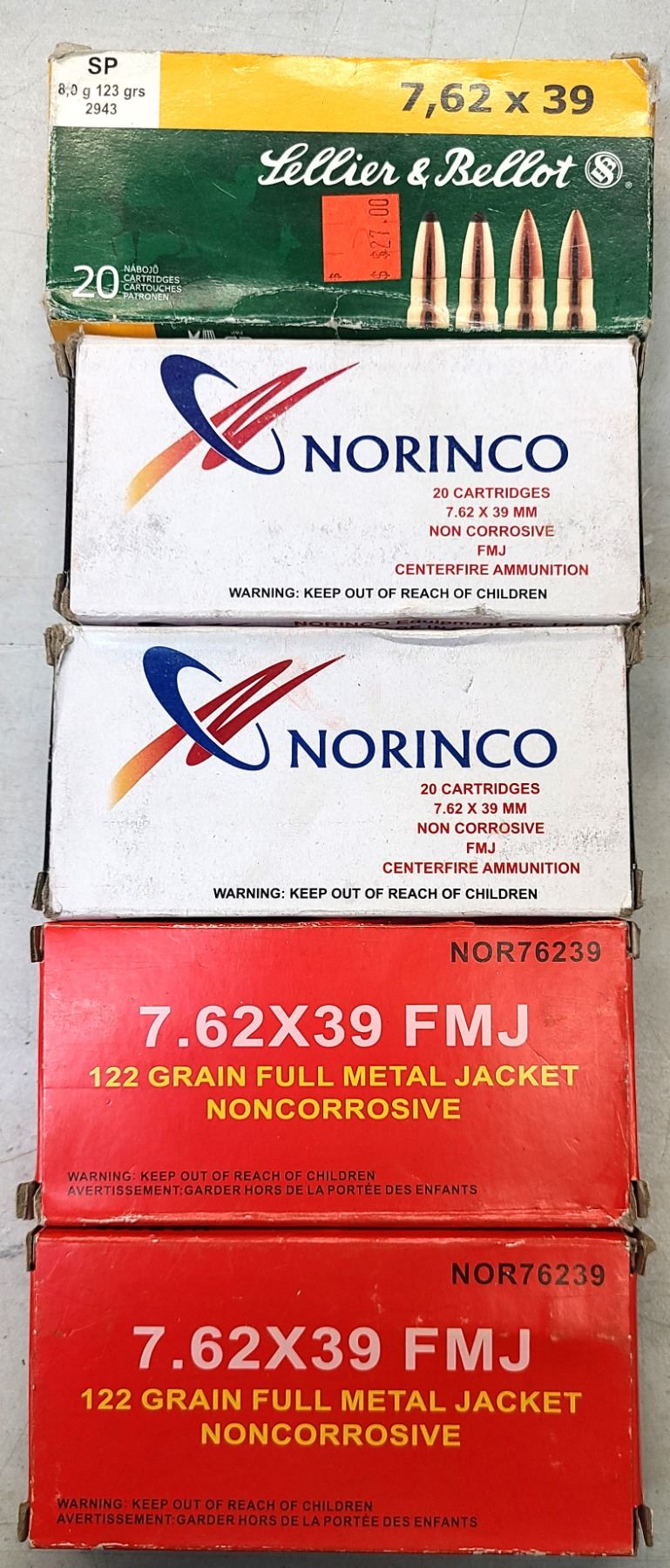 Lot 488 7.62 x 39 FMJ Non-Corrosive Ammo SKS - 100 rds