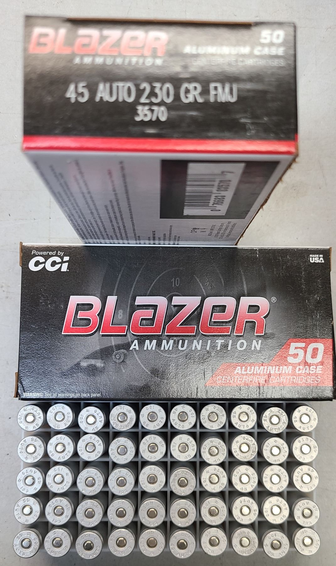 Lot 529 45 ACP Auto Blazer Aluminum Case Ammo 230 gr FMJ - 100 rds