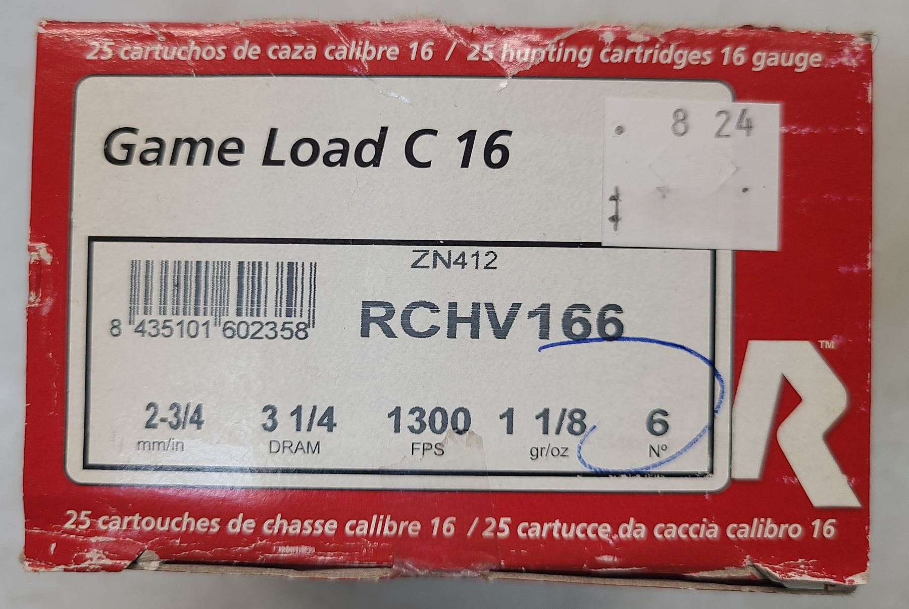 Lot 595 16 ga Rio Shot Gun Ammo No 6 Shot 2 3/4 in - 25 rds