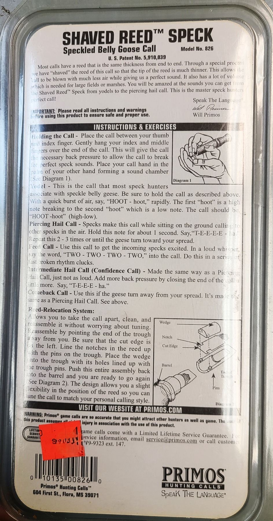 Lot 684 Primos Speckled Belly Shaved Reed Goose Call - NEW
