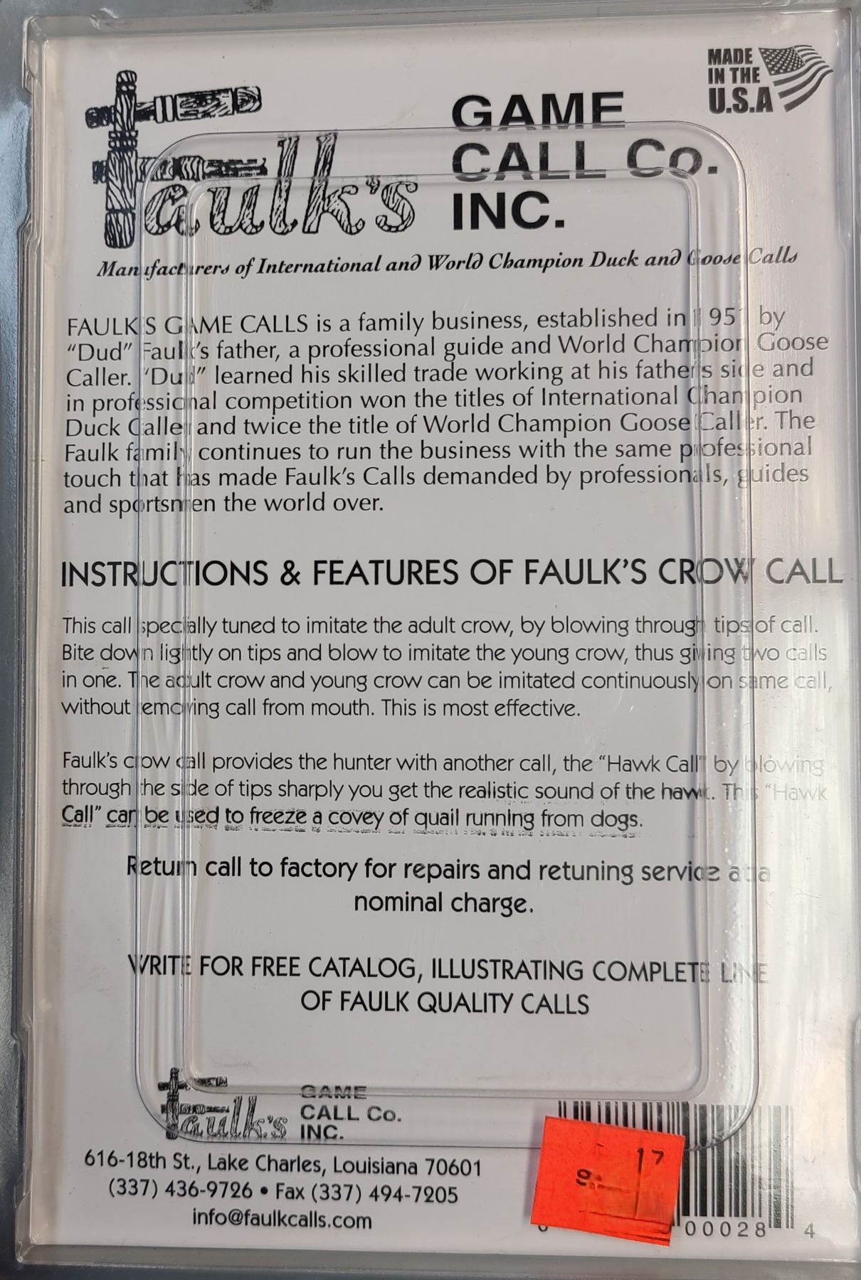 Lot 690 Faulks Champion Crow Call - NEW