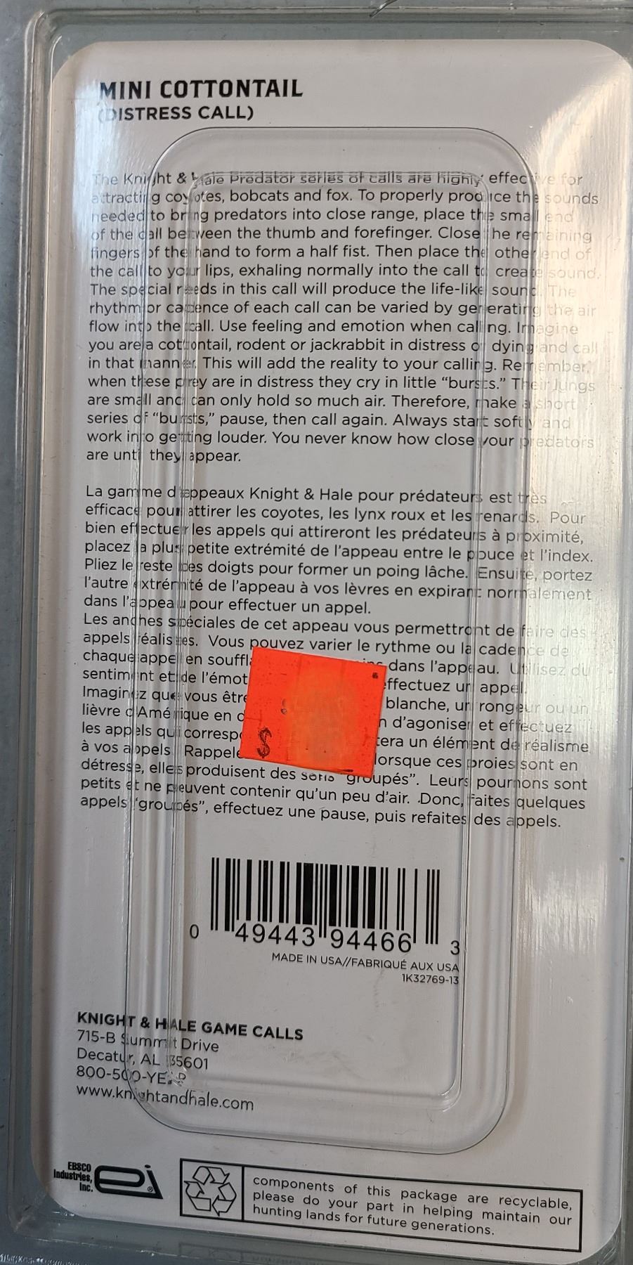 Knight & Hale Mini Cotton Tail Distress Call Coyote Calls - NEW