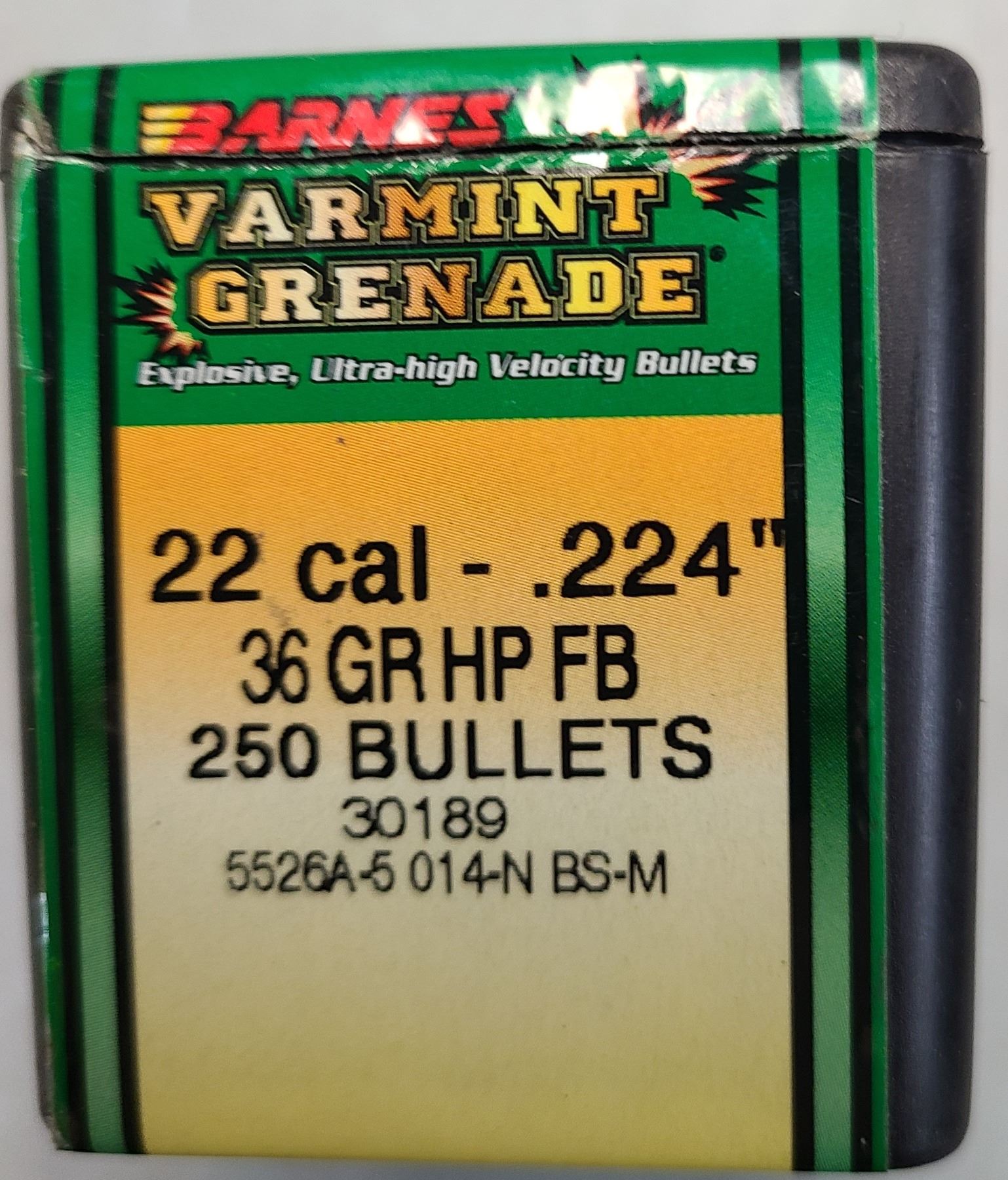 BULLETS - 22 Cal Barnes Varmint Grenade .224 36 gr - 245 rds