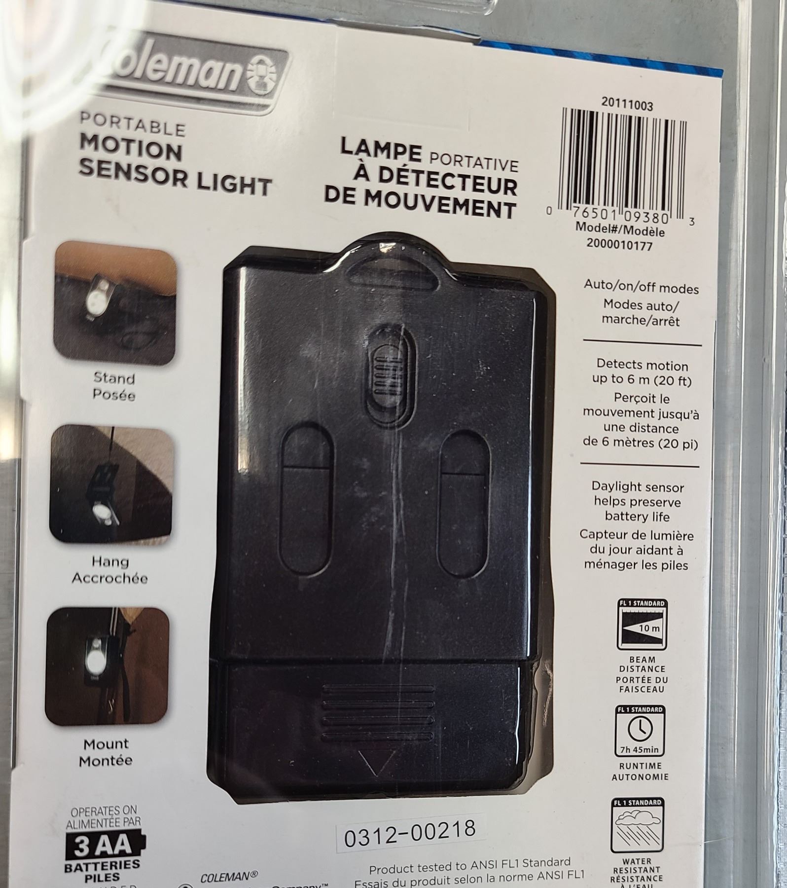 Lot 813 Coleman Motion Sensor Light - LED 30 sq ft Radius 95 Lumens NEW