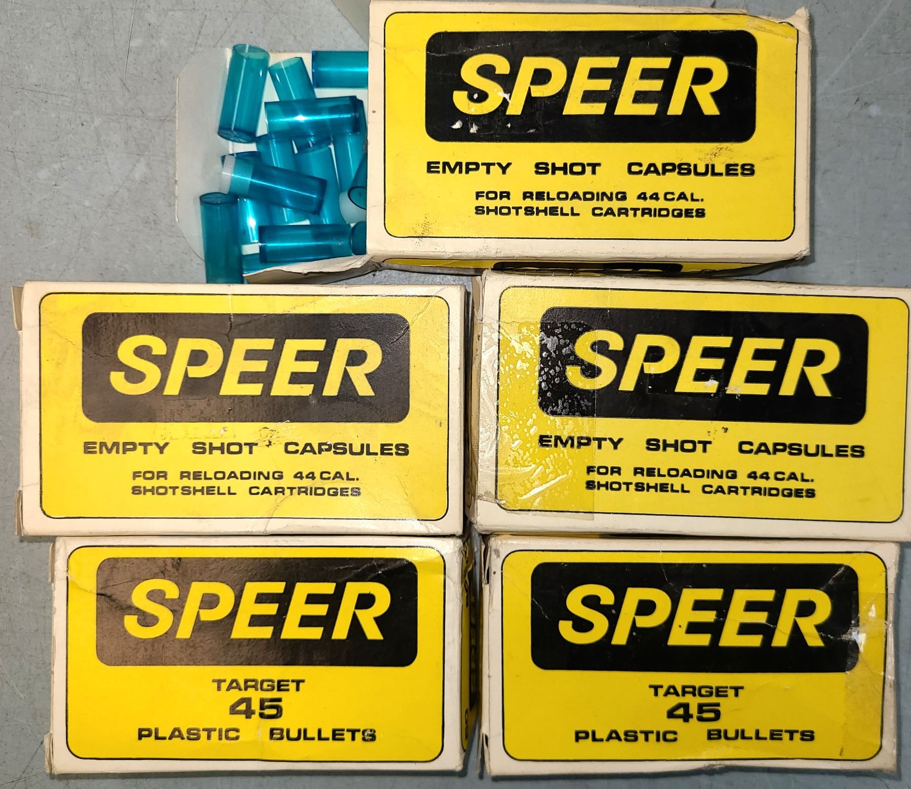 Lot 901 Speer 44 Cal Empty Shot Capsules 150 pc - 45 Cal Plastic Bullets 100 pc