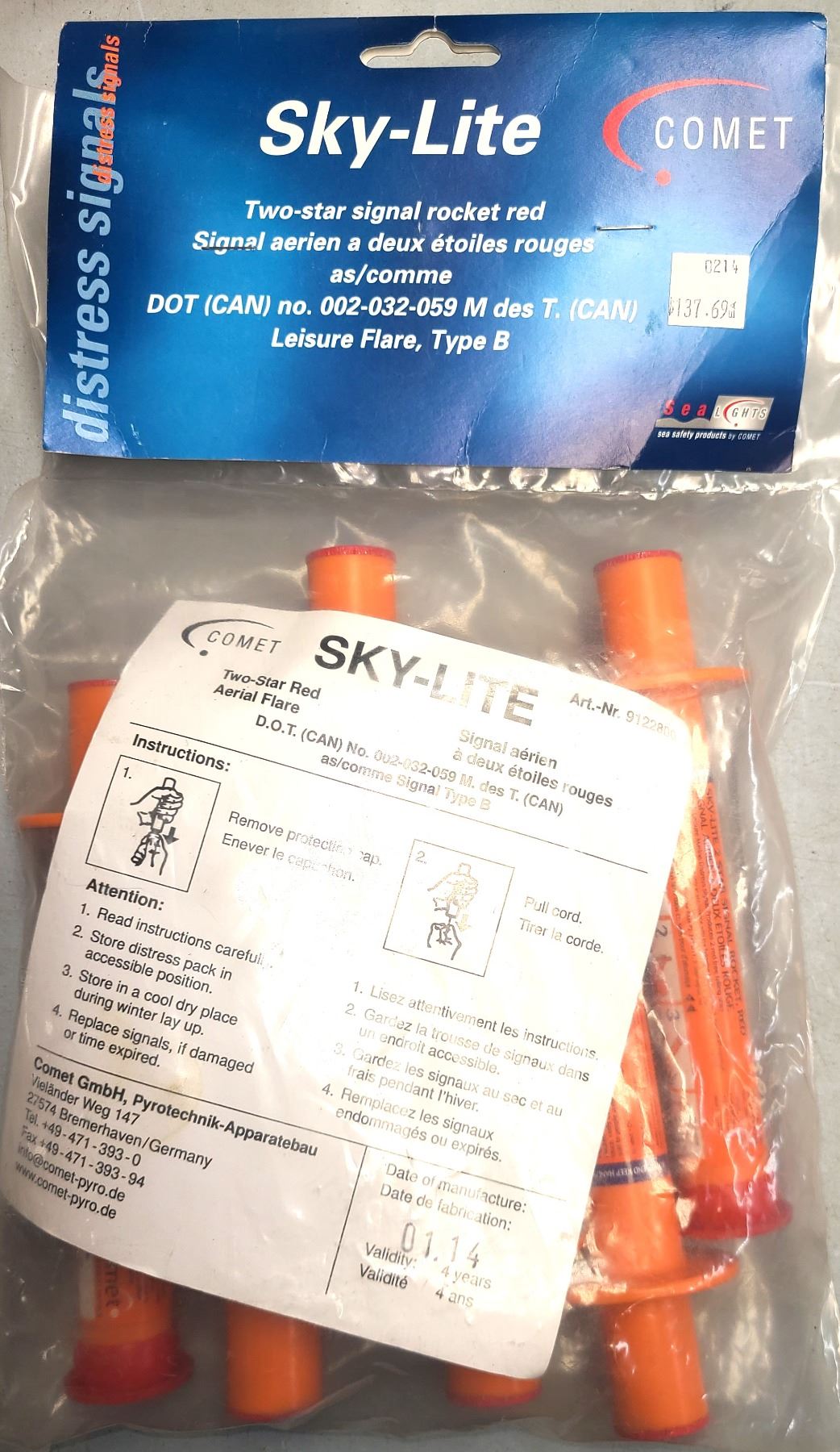 Lot 929 Rocket Flares - 6 x Sky-Lite Comet 2 Star Red Signal Rocket.