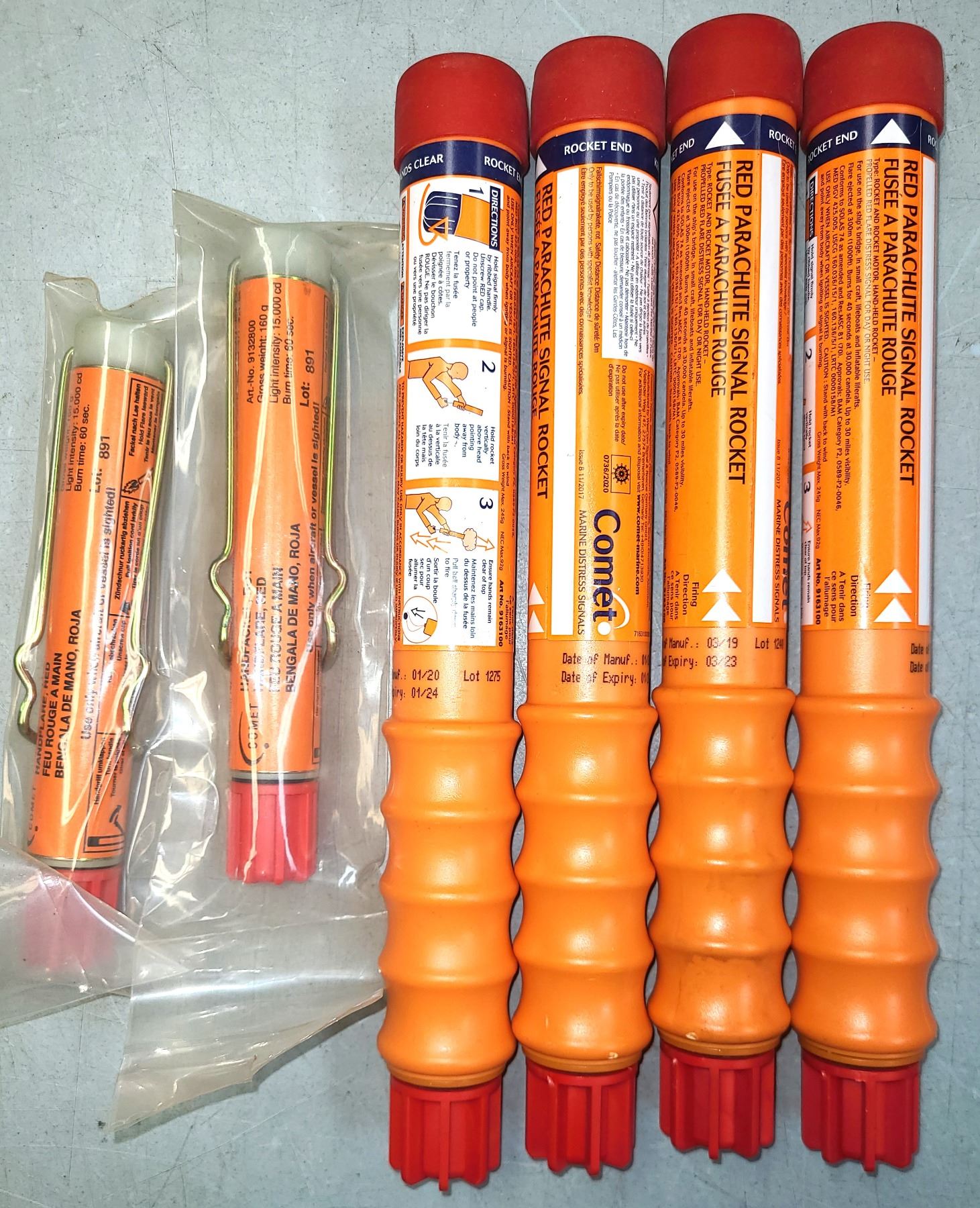 Rocket & Hand Flares - 4 Comet Red Parachute Rockets & 2 Hand Flares
