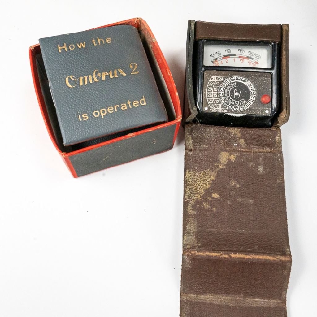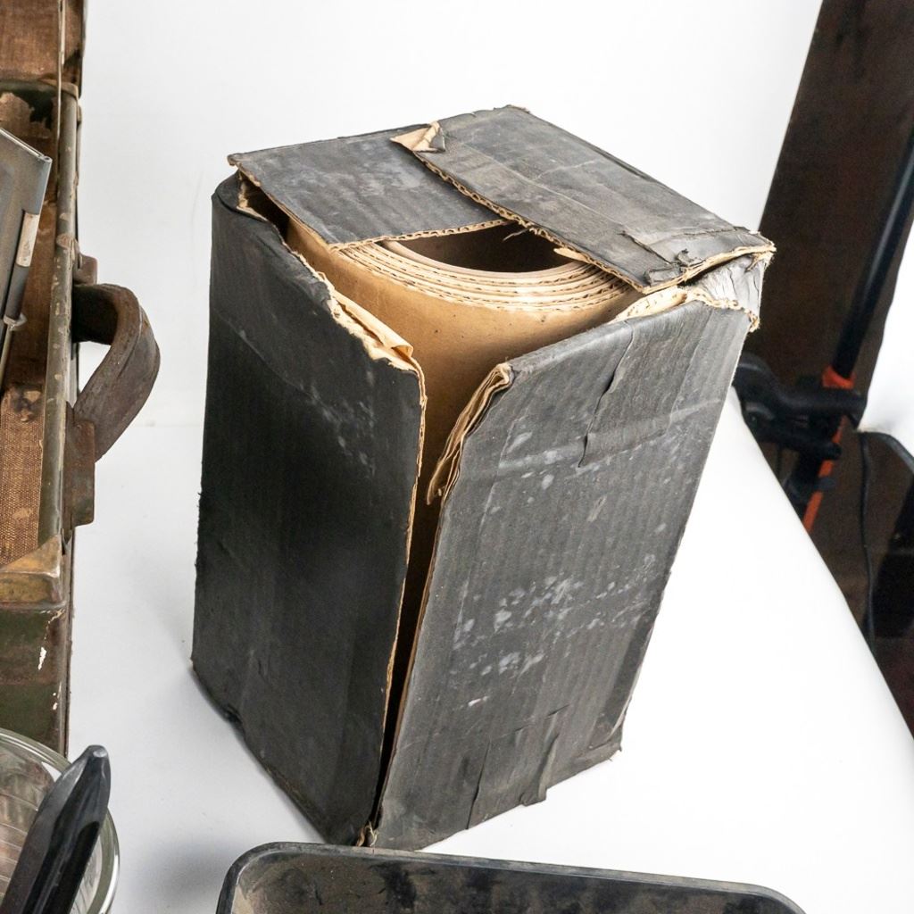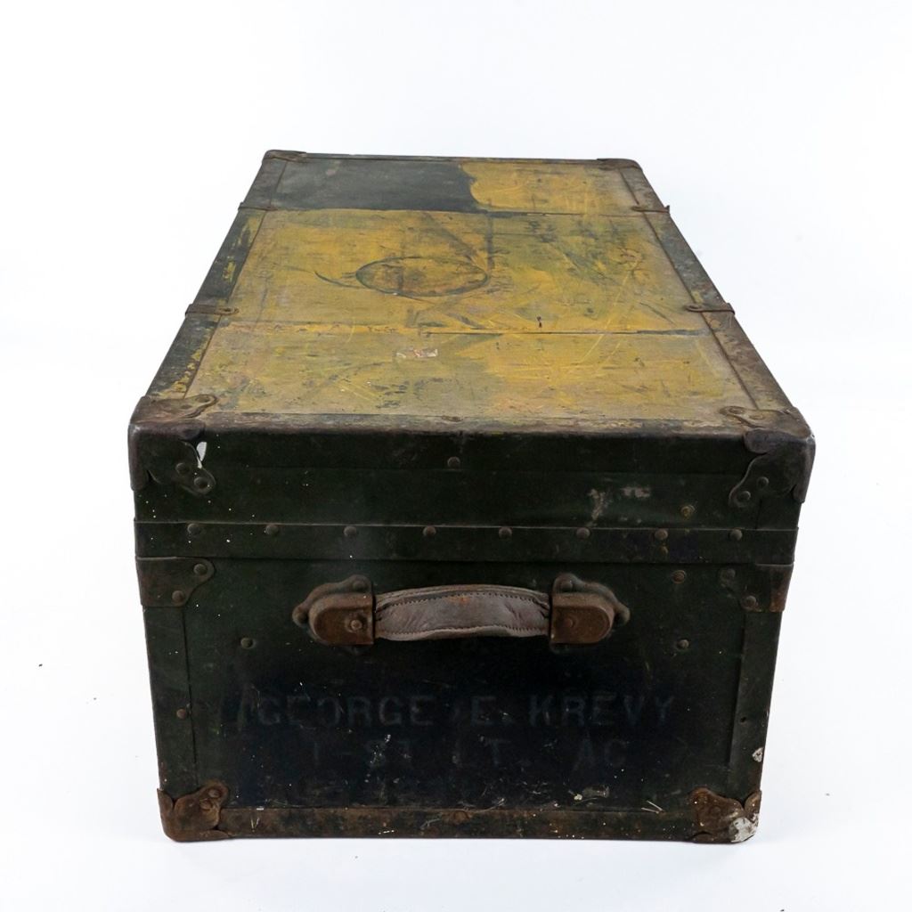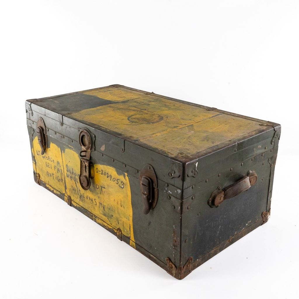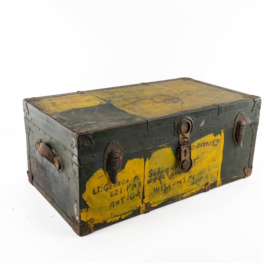 This lot belonged to WWII USAAF Pilot Lt. George Schoeenfeldt of Antigo, Wisconsin. It includes Schattke 4x6 plate camera which George bought in US Zone of Germany in 1945-46. Also included in his service trunk is a home made plate camera and his Federal Photo Enlarger with instructions, roll of muslin paper for photo drying, 2 tongs, measuring glass beaker and other various parts. His pilot Grouping is also in this auction.