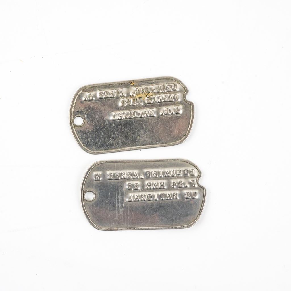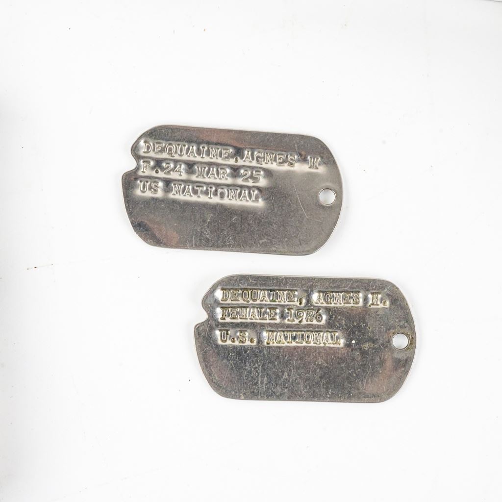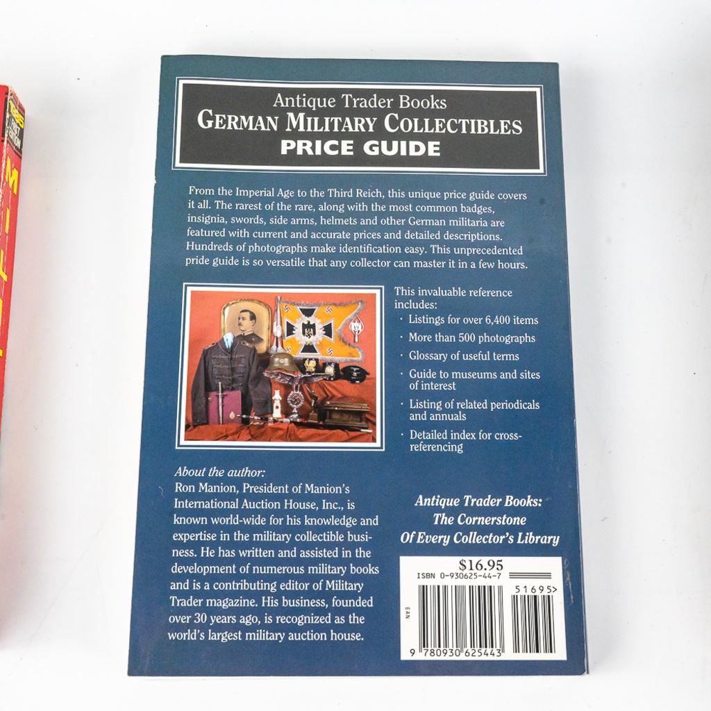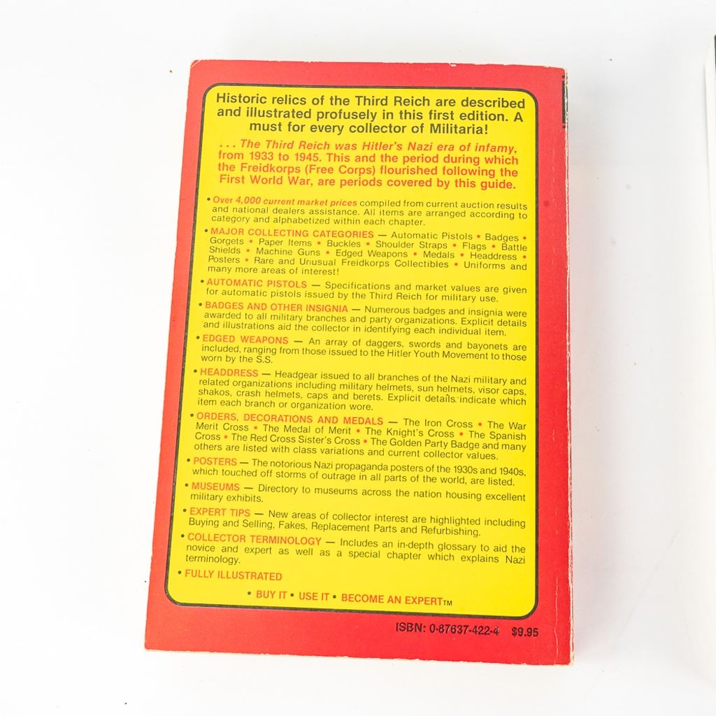 Lot of 5 includes 1) WWII era cigarette and lighter case. The attached jump badge may be post war. Marked with "Dawn" marker logo inside. 2) WWII German leather map case with DAF cap badge attached. Has one brown mechanic pencil under lid. Case shows wear and age. 3) Pair of WWII or later woman's dog tags and 4-5) Two price guide books on WWII German collecting.