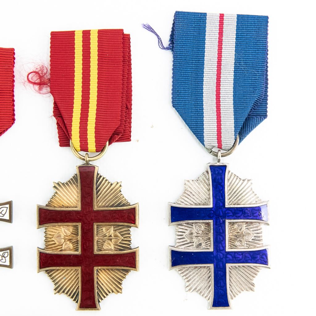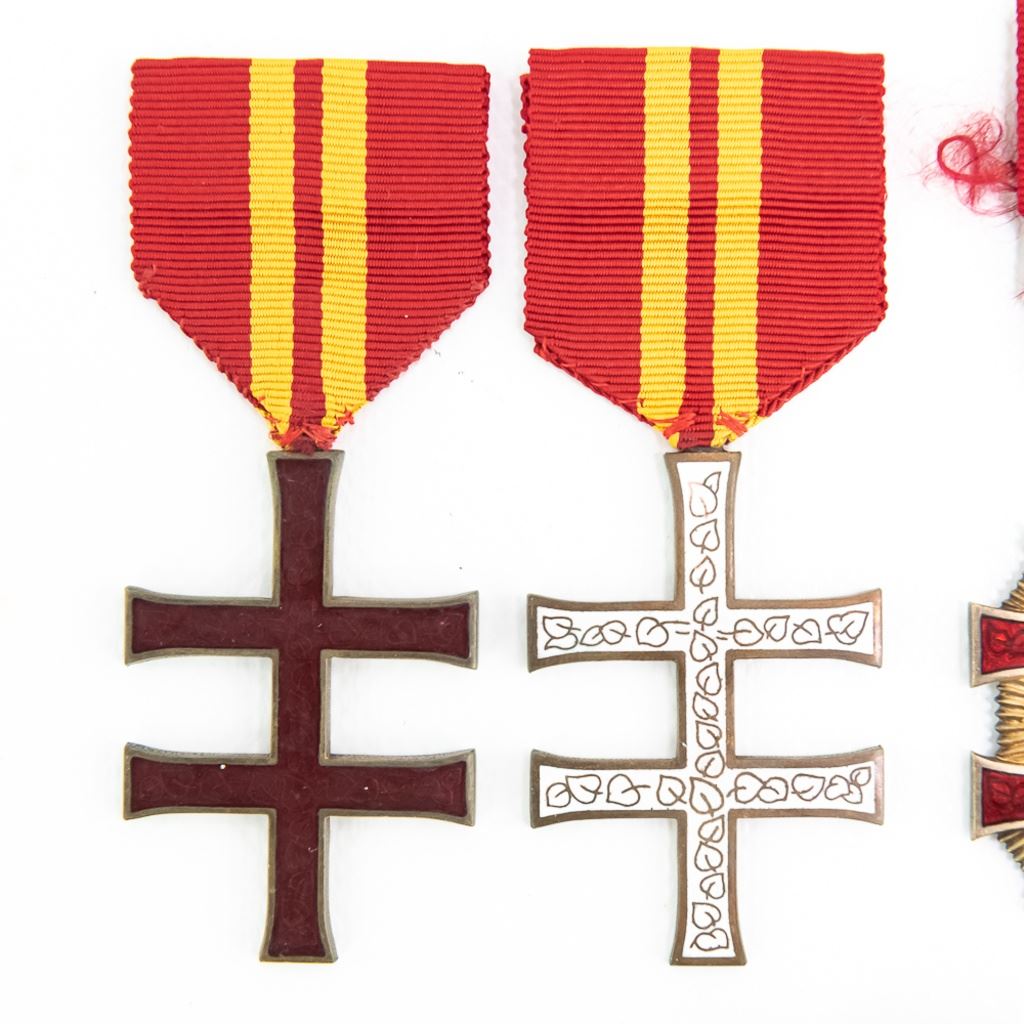A set of 7 classes of Slovak War Victory Orders which include higher grades and classes 4th, gold 5th, silver 6th and Bronze 7th. The 7th has early pin brooch. No maker marks found. The condition is very good for all of them with some tarnish and minor wear.