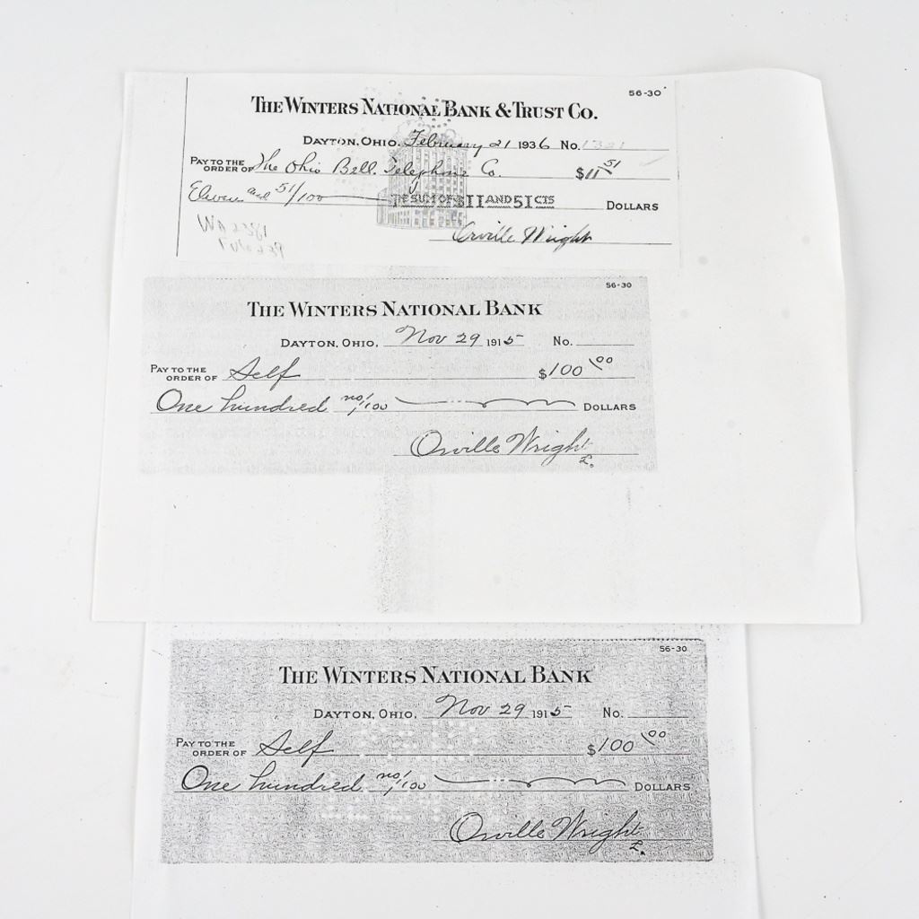 In a field near Centocello on the outskirts of Rome, Italy. 2 photocopies of 3 checks made out by Orville Wright to "The Ohio Bell Telephone Co. in 1936 and 2 checks to himself from 1915.