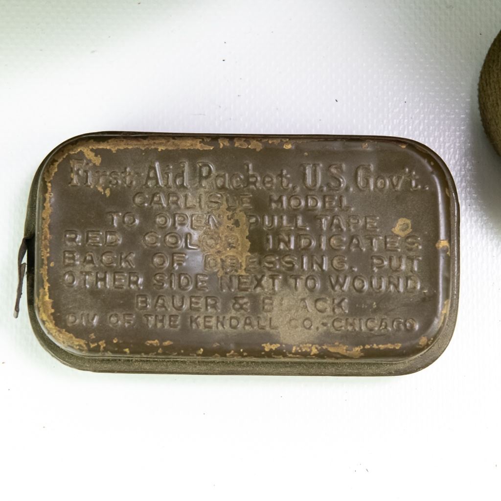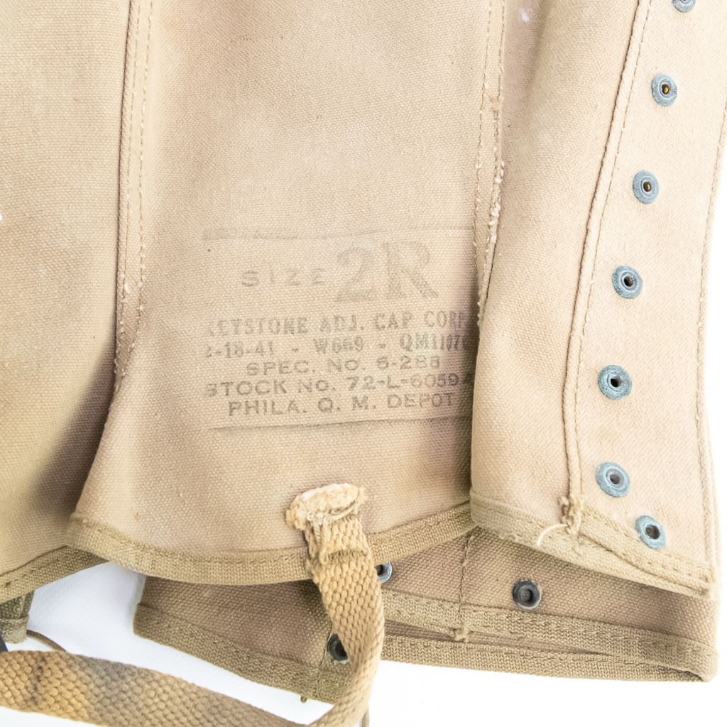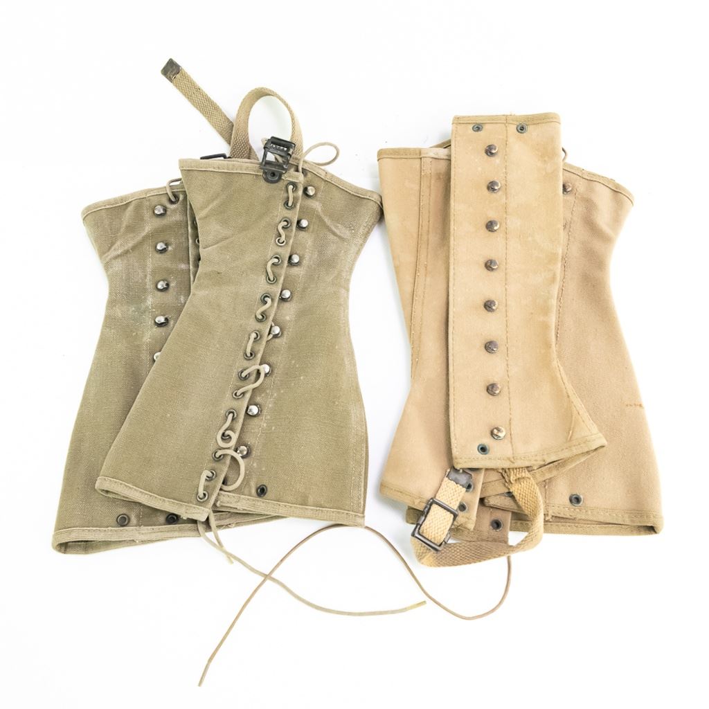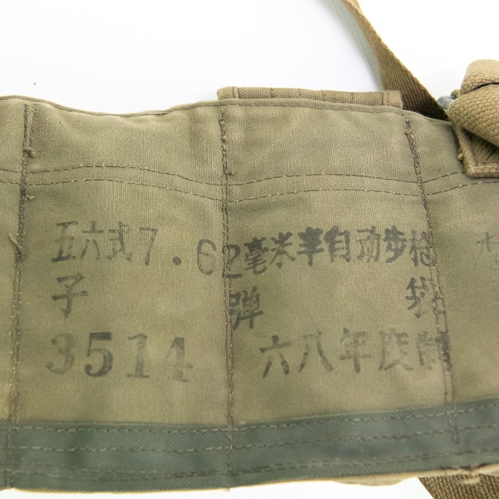 Large group includes 2 German contemporary flags, 2 duffel bags (WWII and 1958). 1944 date British musette bag named and marked LIAP (Leave In Addition Python) for North Africa. Old brass US Carlisle bandage, 2 pairs of WWII US leggings 2R and 3R. Chinese 7.62mm ammo bandoleer. WWII US two-tone jeep/motorcycle tool saddle bag set with corner damage. All have a musty smell.