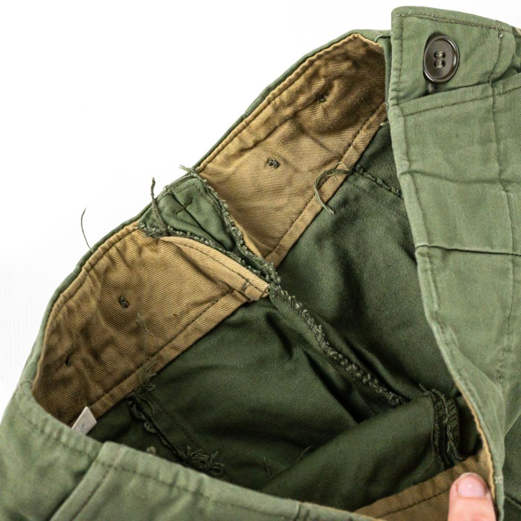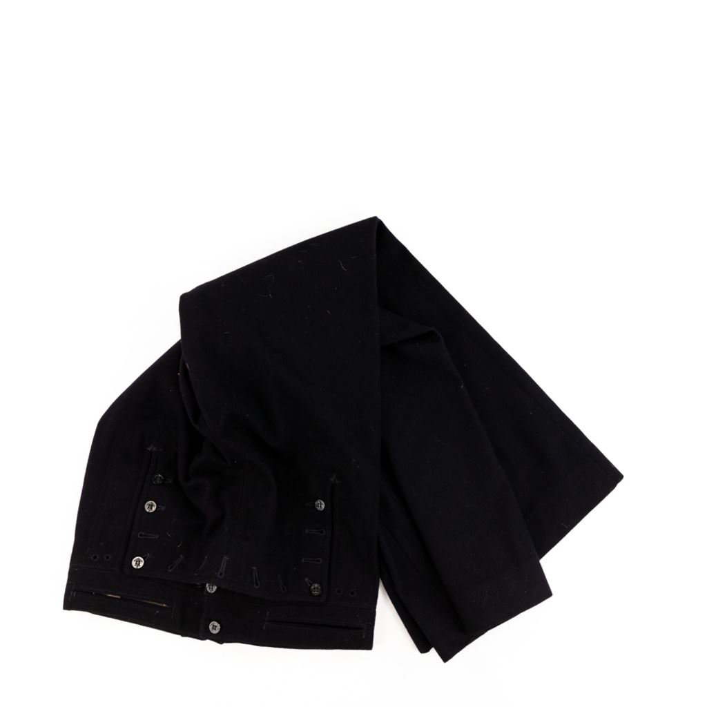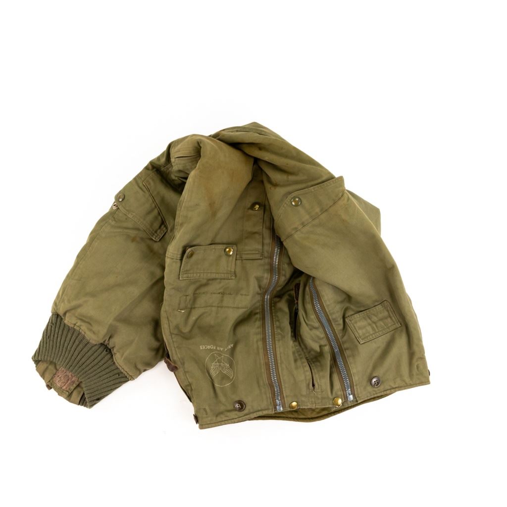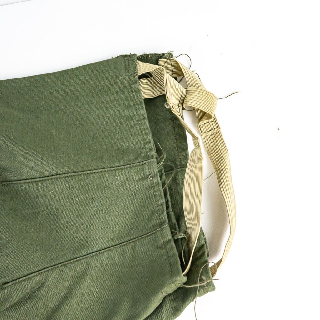 This WWII US lot includes 1) US Army Was Service trousers with size tag 16R and washed out spec tag and in very good condition. 2) US Navy wool bell bottoms with small waist and 28" inseam in excellent condition. 3-4-5) French blue overseas cap, US wool 1950 7 /18" overseas cap and US Khaki officer's overseas cap. 6)Pair of size 1 pre-WWI leggings with ink stamps. 7) USAAF Type A-11 flight trousers waist size 32 in good condition.