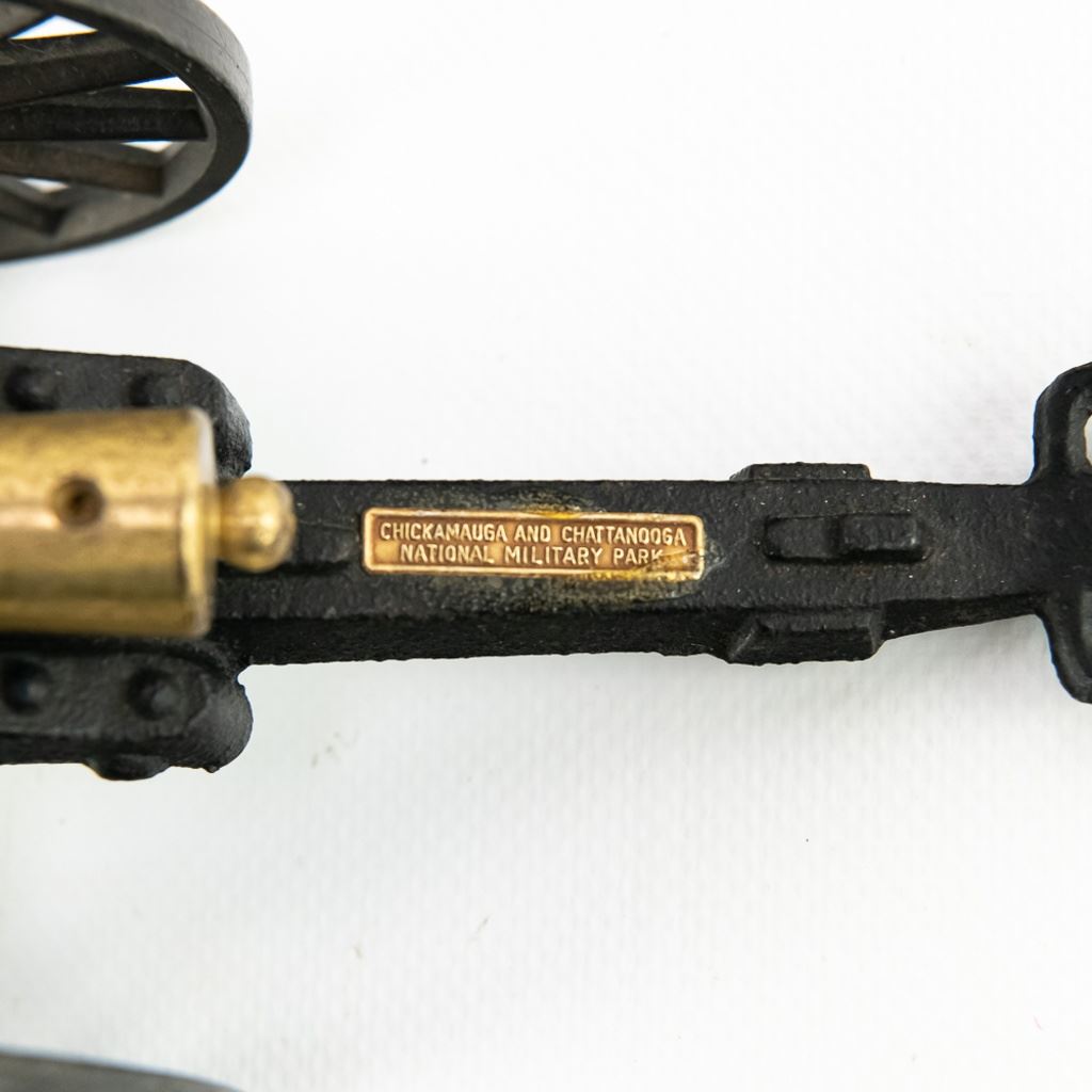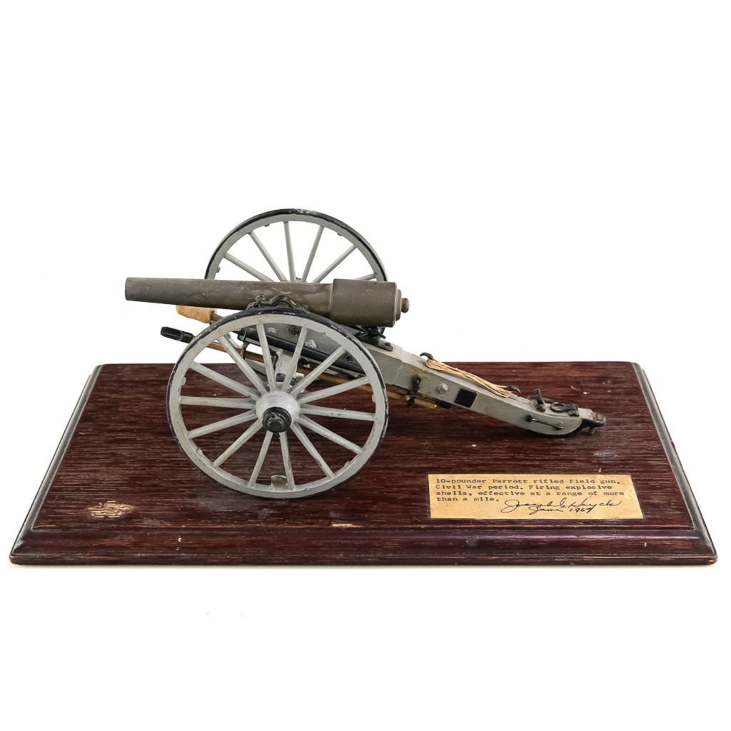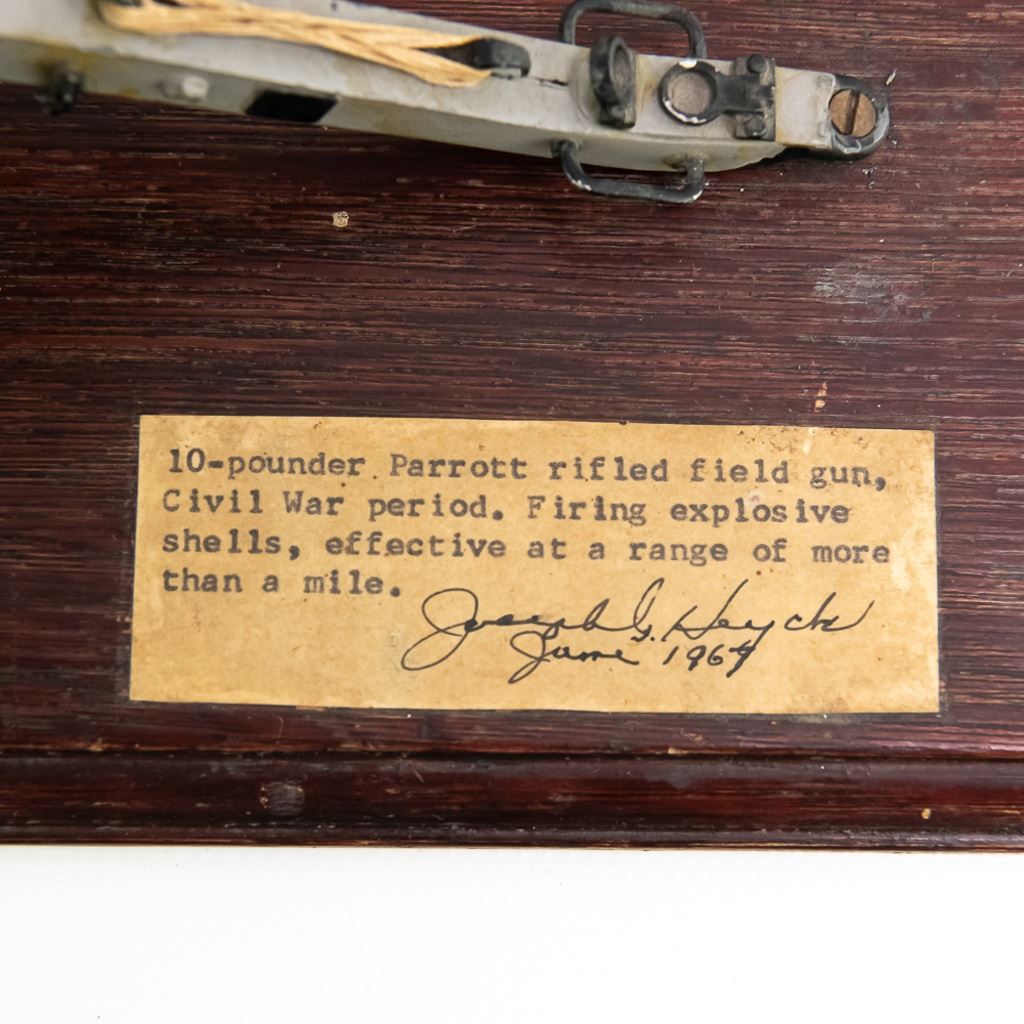 -10lb Parrott Rifled Field 4" cannon and chassis w/tools and mounted a wooden plaque