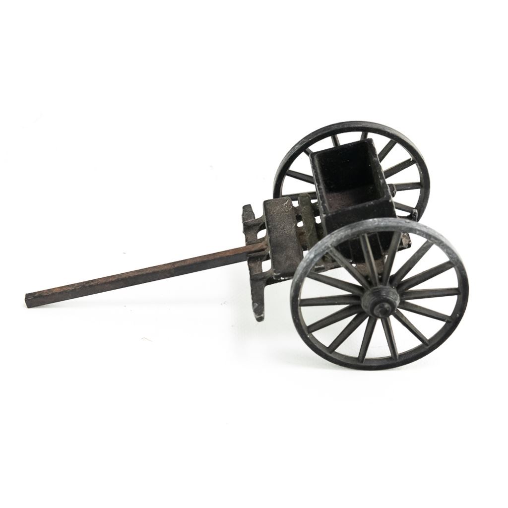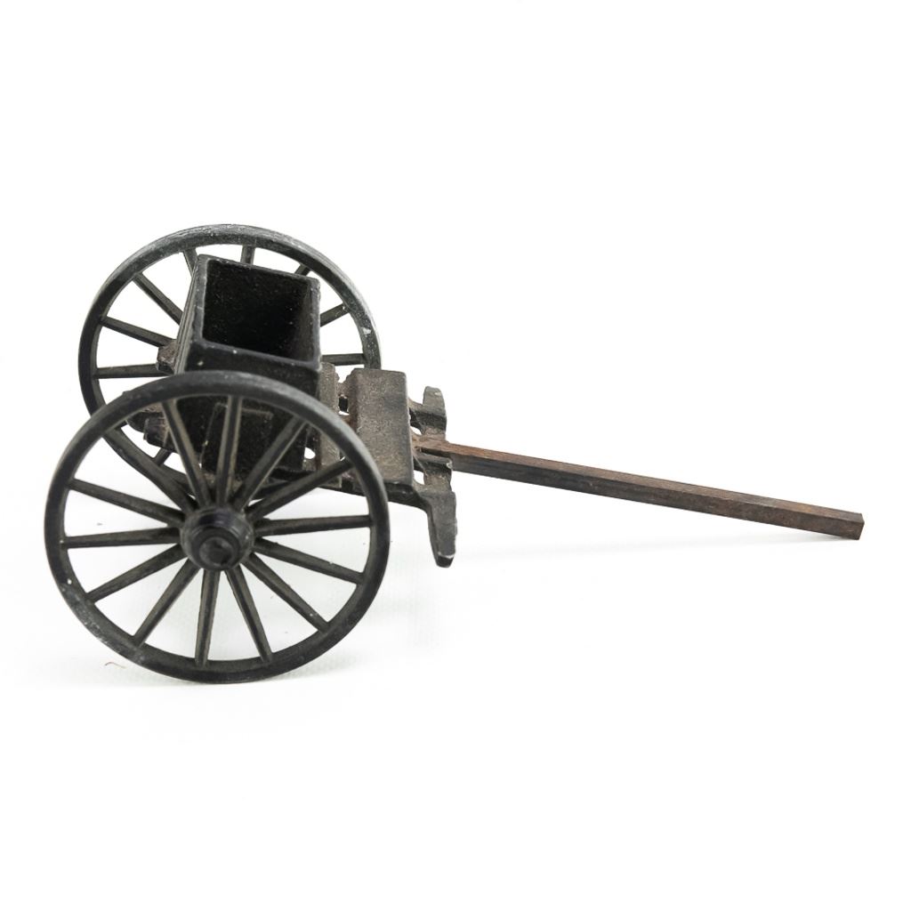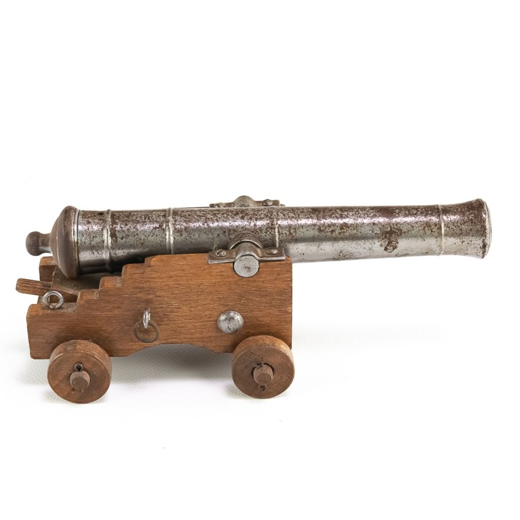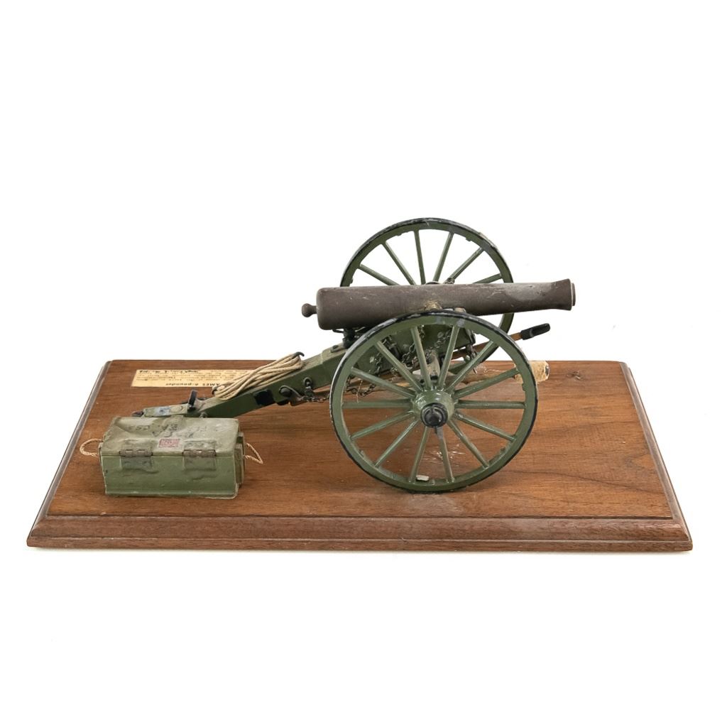 -12lb Napoleon 4" cannon and chassis. w/tools and mounted on a wood plaque. One wheel is cracked.
