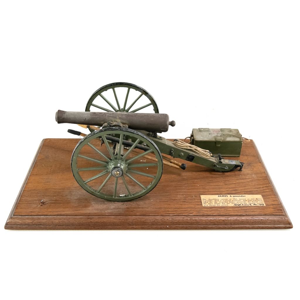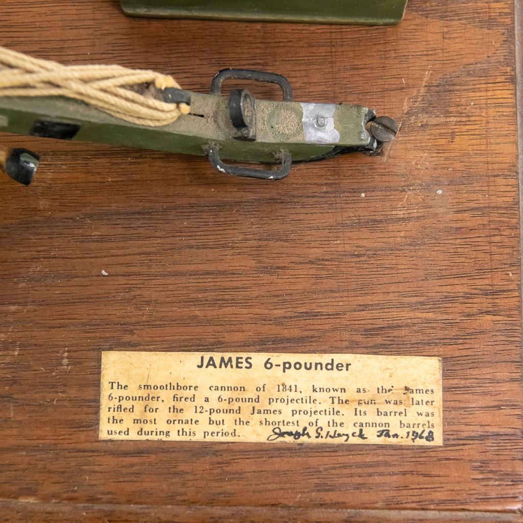 - 6lb James 4" Cannon and chassis w/ tools and ammo locker mounted on a wooden plaque