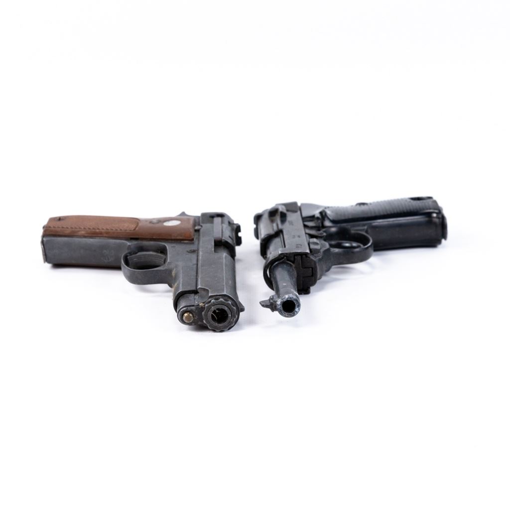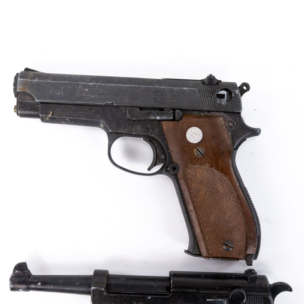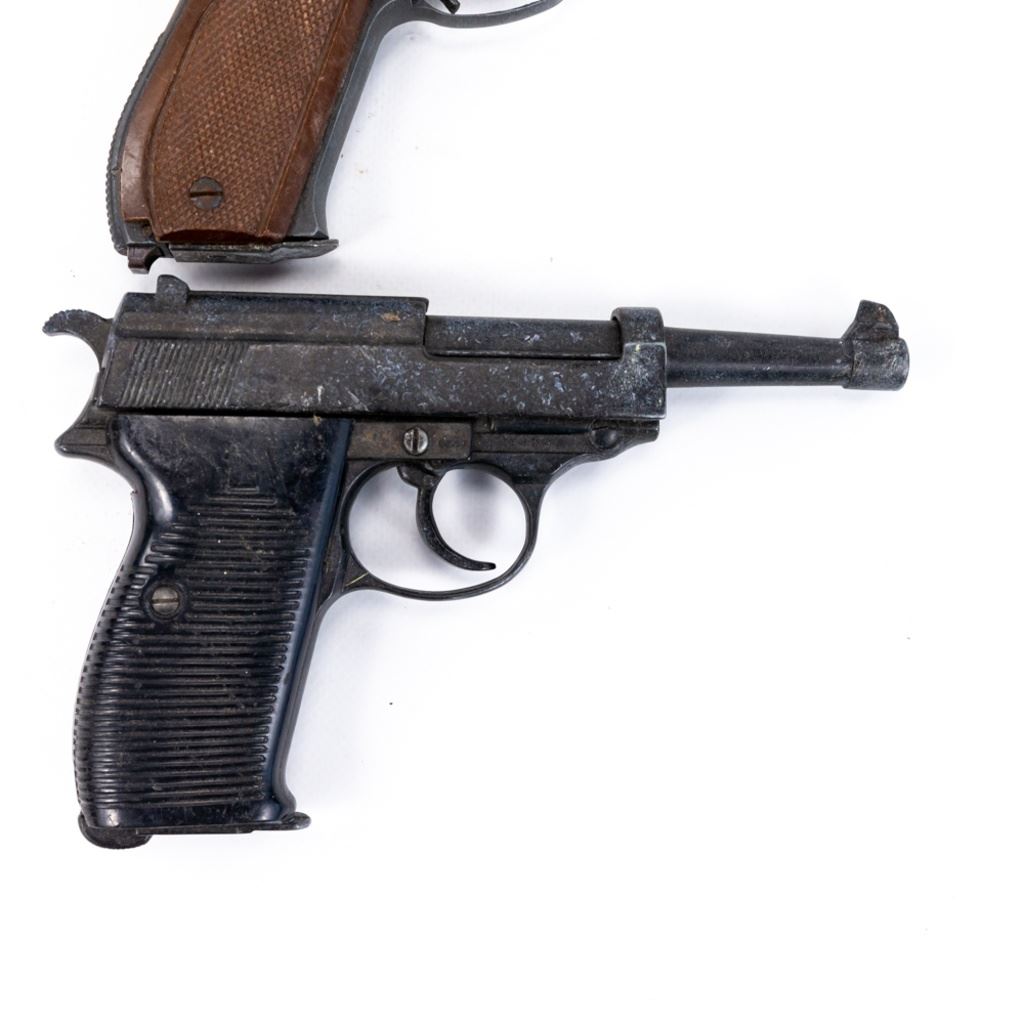 1 Denix P-38 and one rare MGC model SW-44. Both were used as movie props so are well worn and/or missing small parts. Great for a costume or display. See photos.