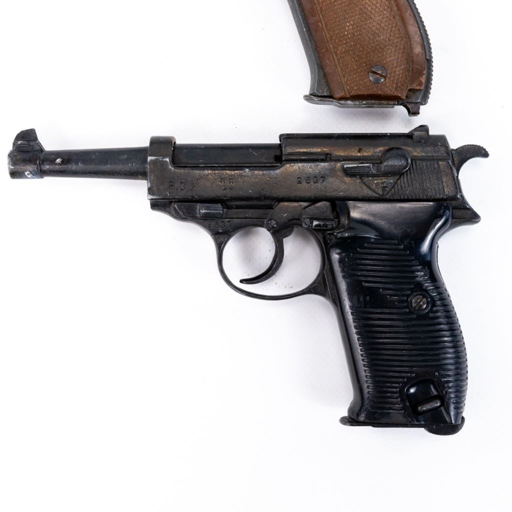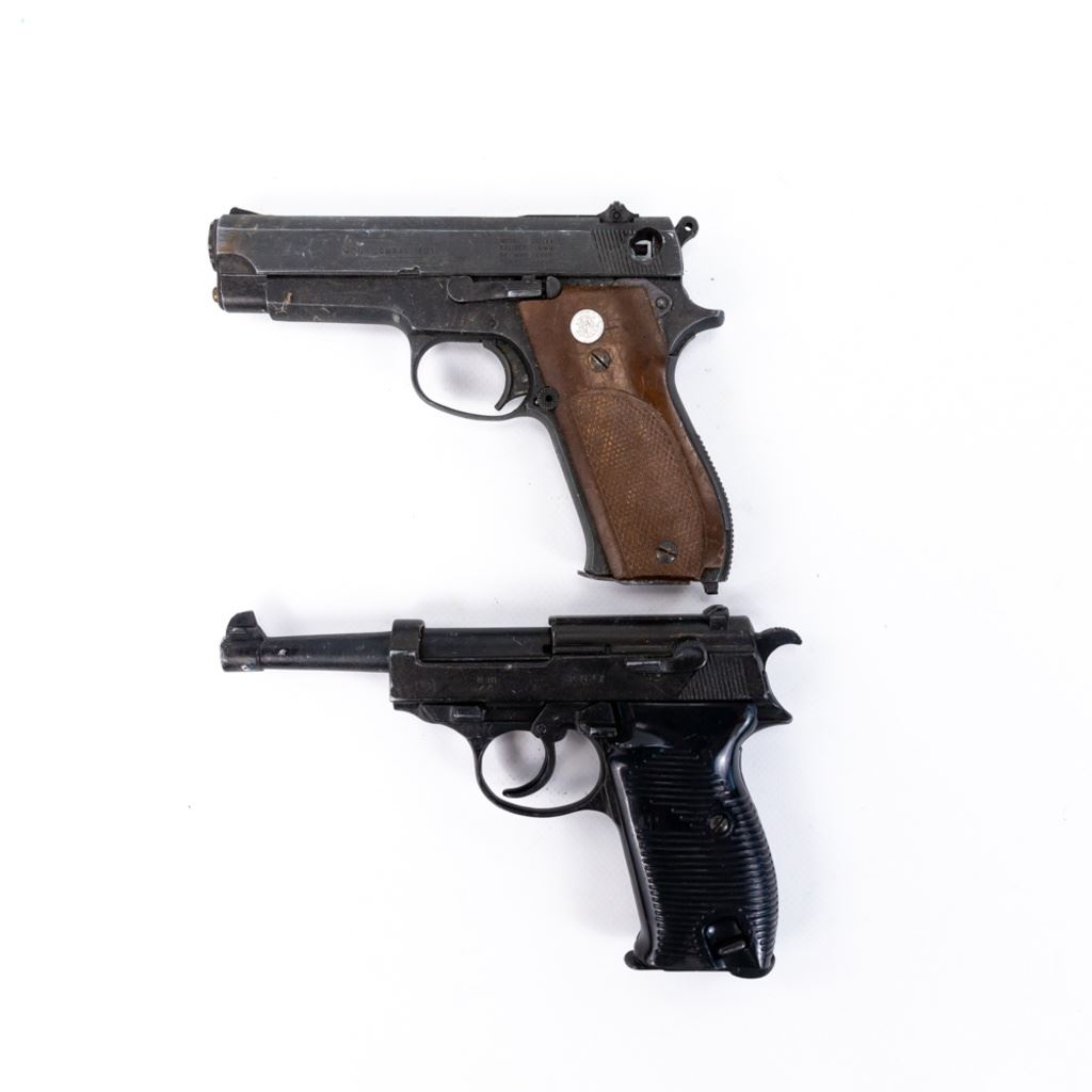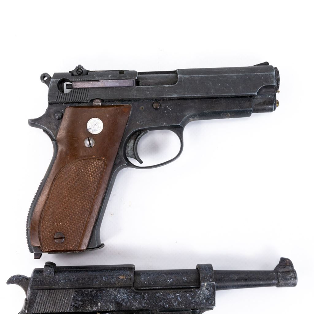 1 Denix P-38 and one rare MGC model SW-44. Both were used as movie props so are well worn and/or missing small parts. Great for a costume or display. See photos.
