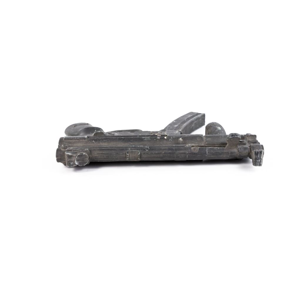 Replica dummy rubber weapon made by Rings. Used for police training and movie stunt use. This gun has been painted black and used for movie work, so it is worn and dinged. See Photos.