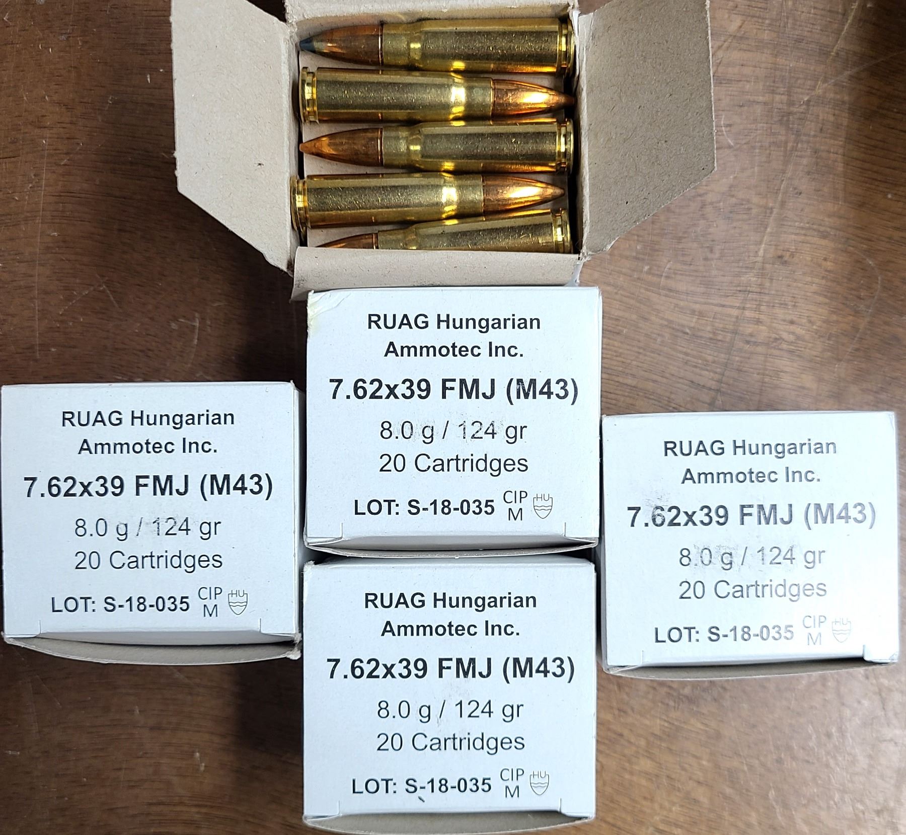 AMMO - 7.62 x 39 Raug Hungarian Non-Corrosive FMJ 123 gr - 100 rds
