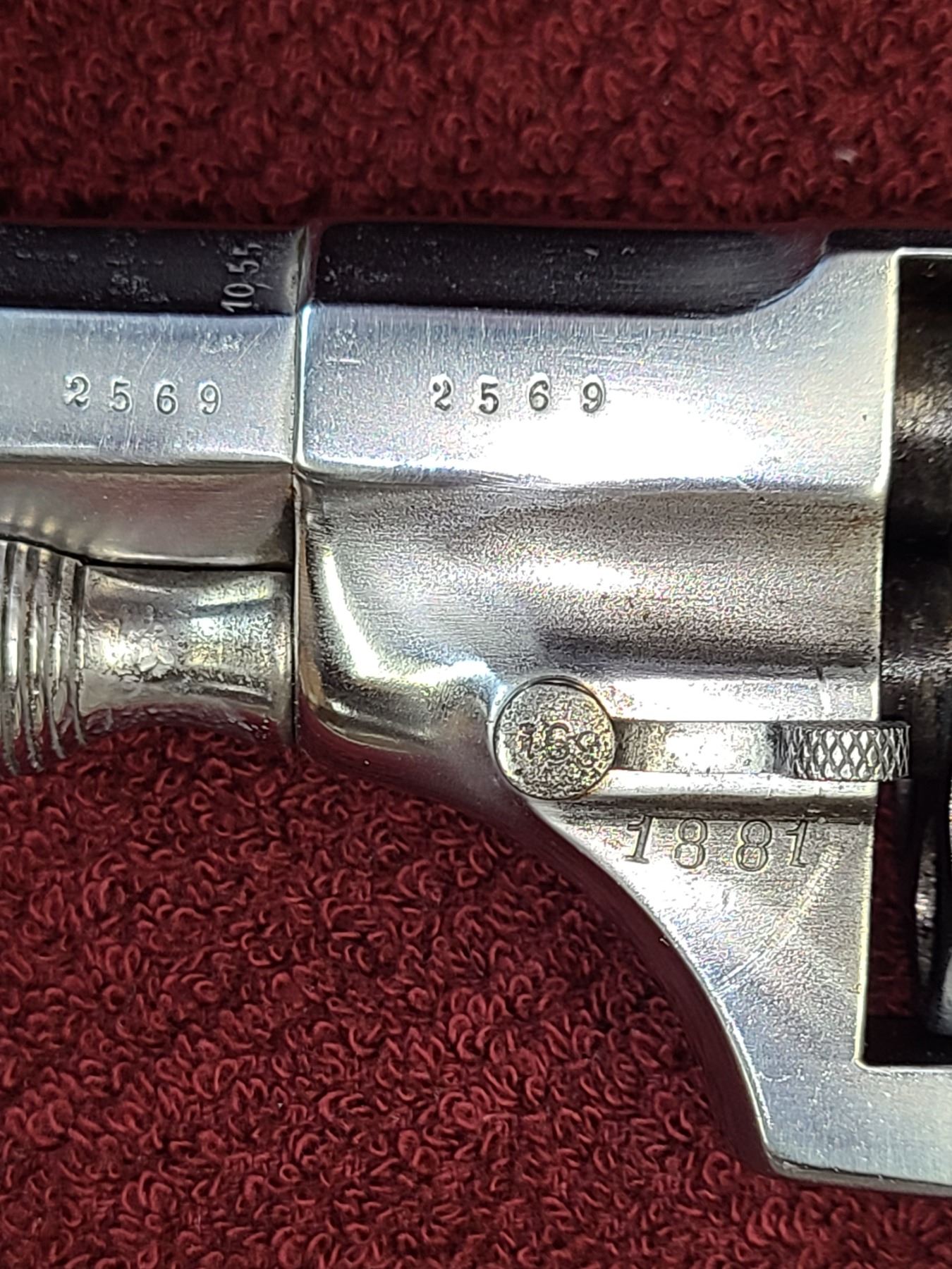 This is the The Model of 1879 was issued with a 7 inch - 10.6mm x 25R mm Barrel