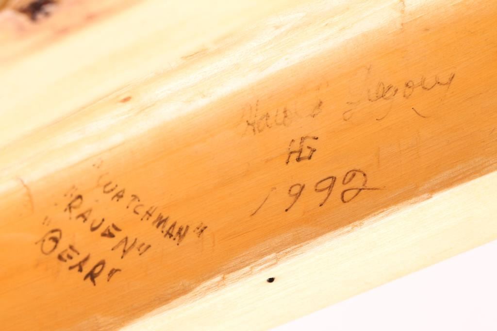 Entitled "Watchman Raven Bear", dated 1992, signed Howard Gregory, measures 58"x11".