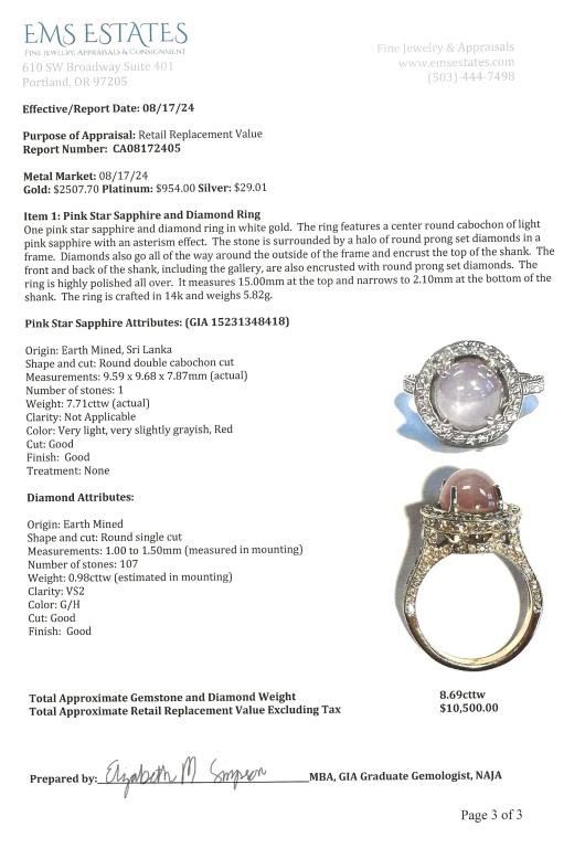Lot 126a Exquisite Fine Bulgari Style Pink Star Sapphire