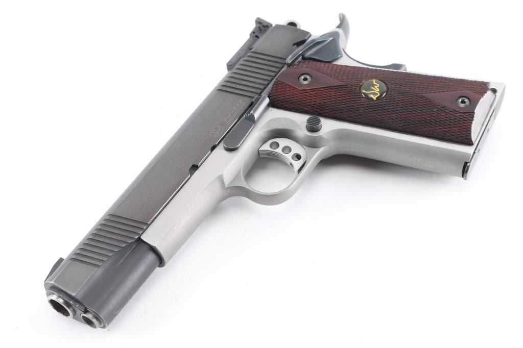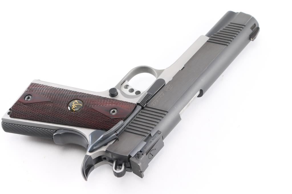 ambidextrous manual Thumb/Grip Safety. Skeletonized adjustable trigger, Skeletonized hammer. Bore is excellent, finish is about 98% with very minor scratches, edge wear. Grips are excellent.