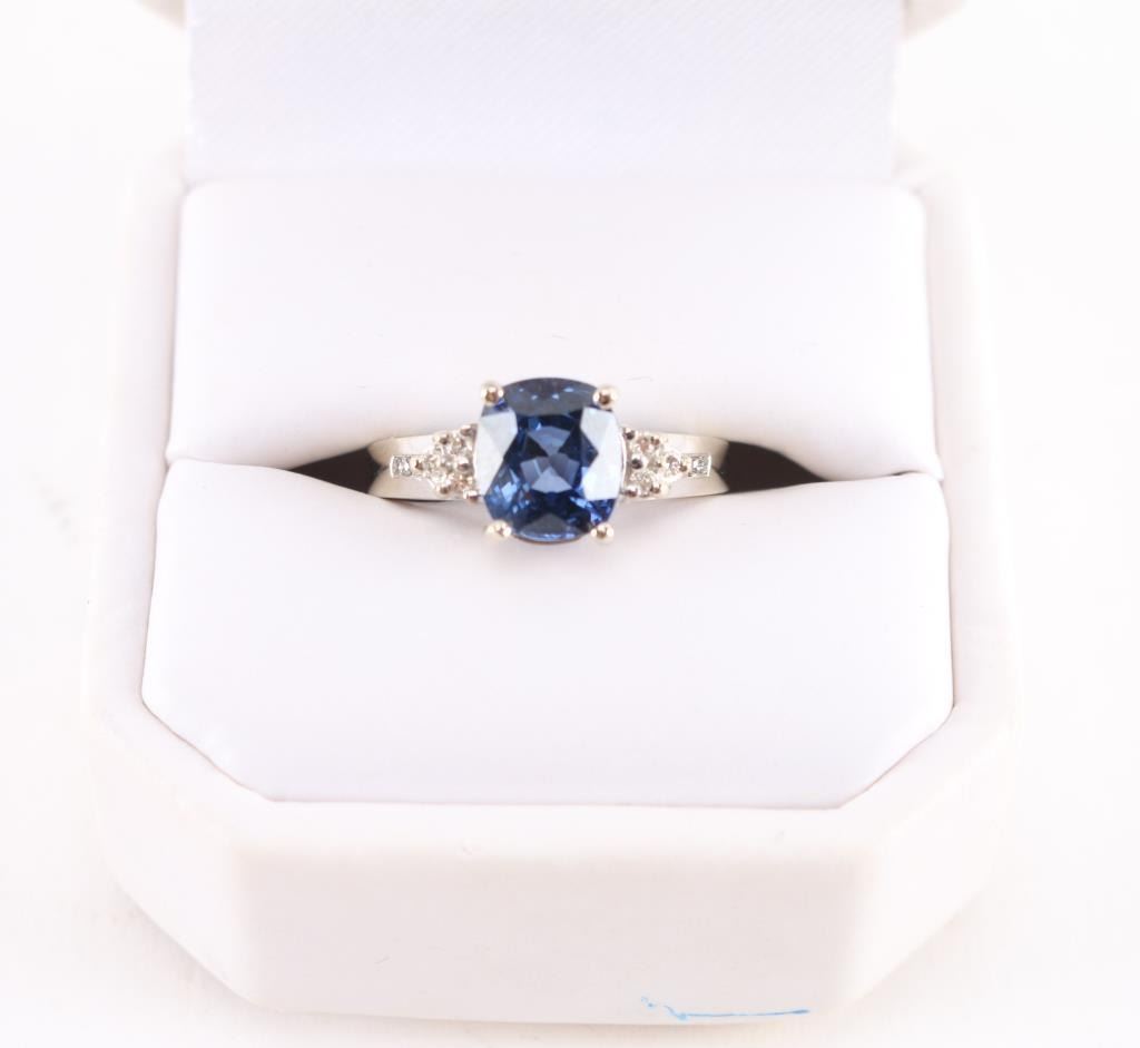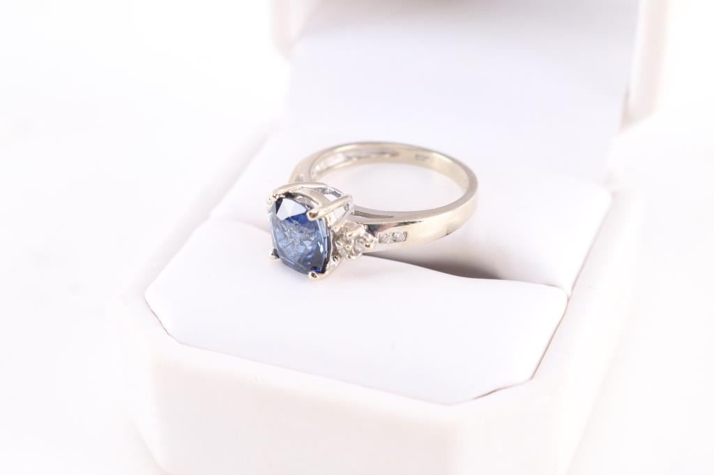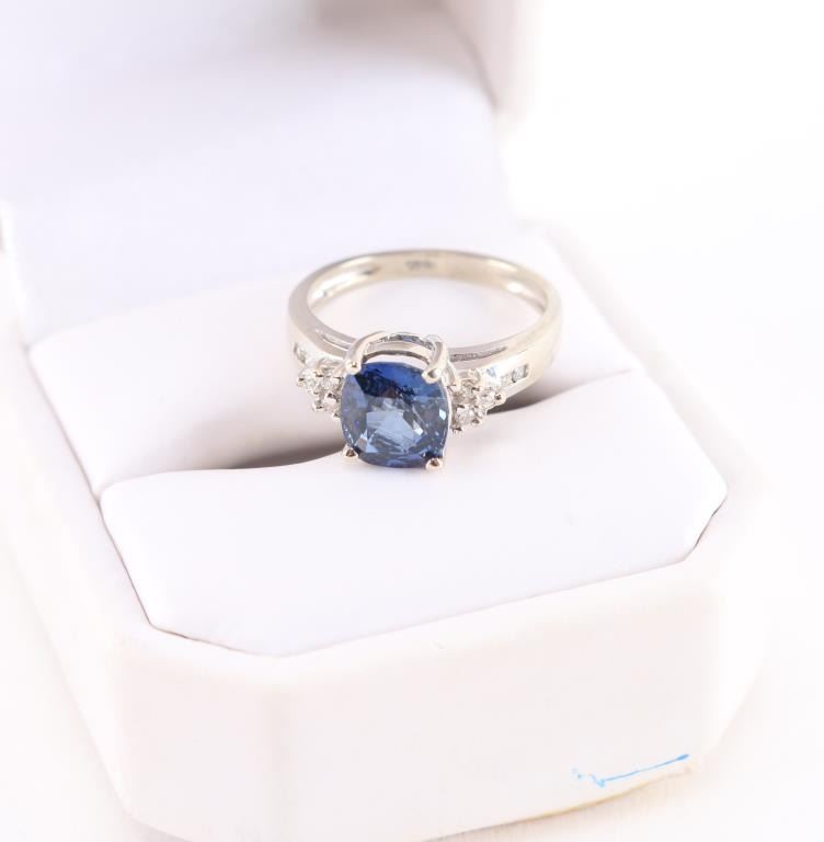 Lot 220 High Quality 14K White Gold & Sapphire Ring