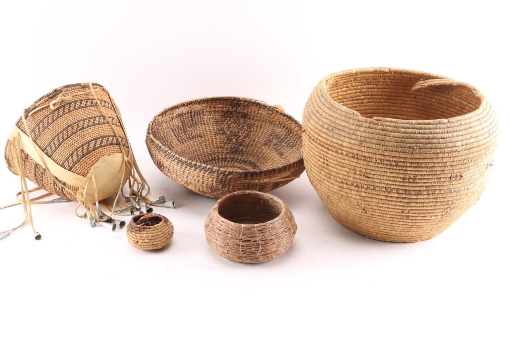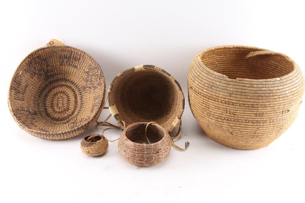 (1) Northeast Tribal Pine needle basket, measures 5".
