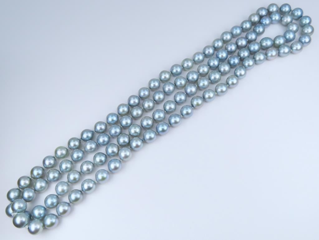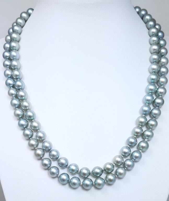 featuring Silver Pearls averaging approx. 7.50 mm in diameter with nice luster, strand measures 35 inches in length.
