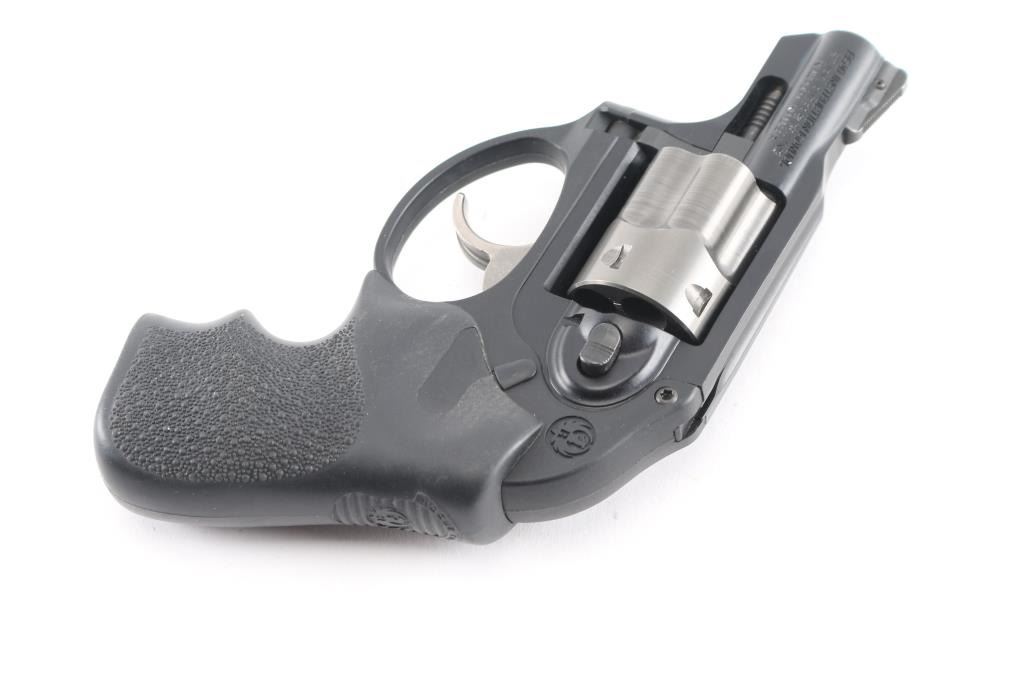 American made DA 5 shot revolver chambered in .38 SPL+P. The monolithic frame is made from aerospace-grade, 7000-series aluminum, internal hammer. High-strength stainless steel cylinder, featuring a PVD finish for excellent durability, is extensively fluted, reducing weight. It has replaceable, pinned ramp front sight. The factory installed Hogue® Tamer Monogrip®, with Ruger logo on backstrap, reduces perceived recoil. Bore looks good with almost no signs this gun was ever handled. Comes with soft Ruger case, original box, no manual.
