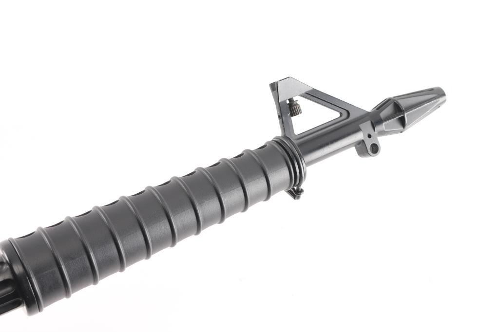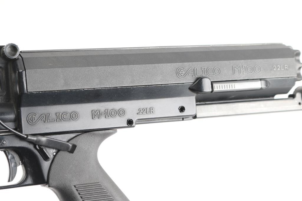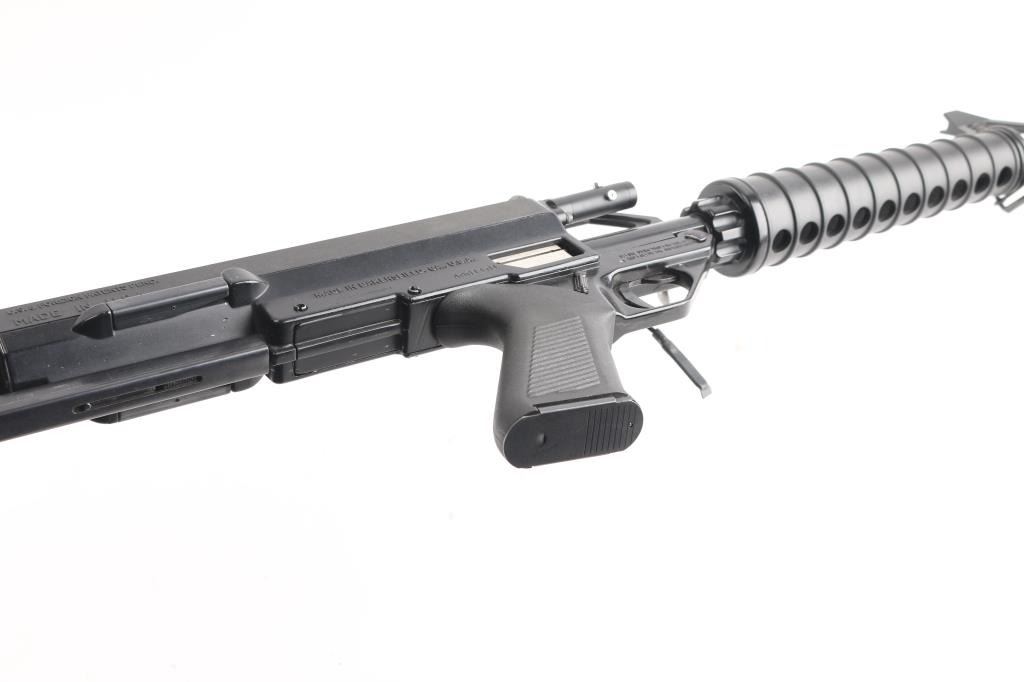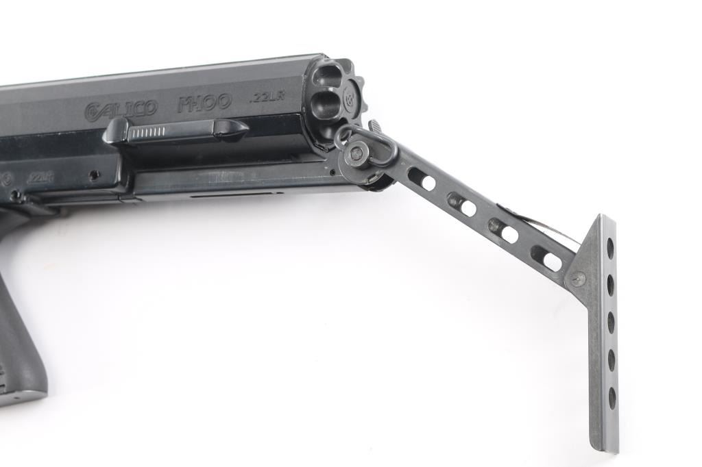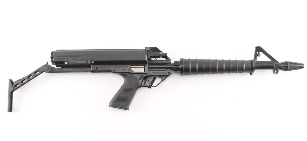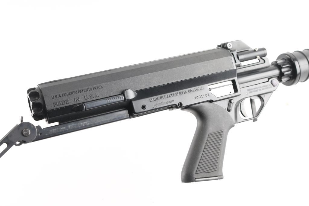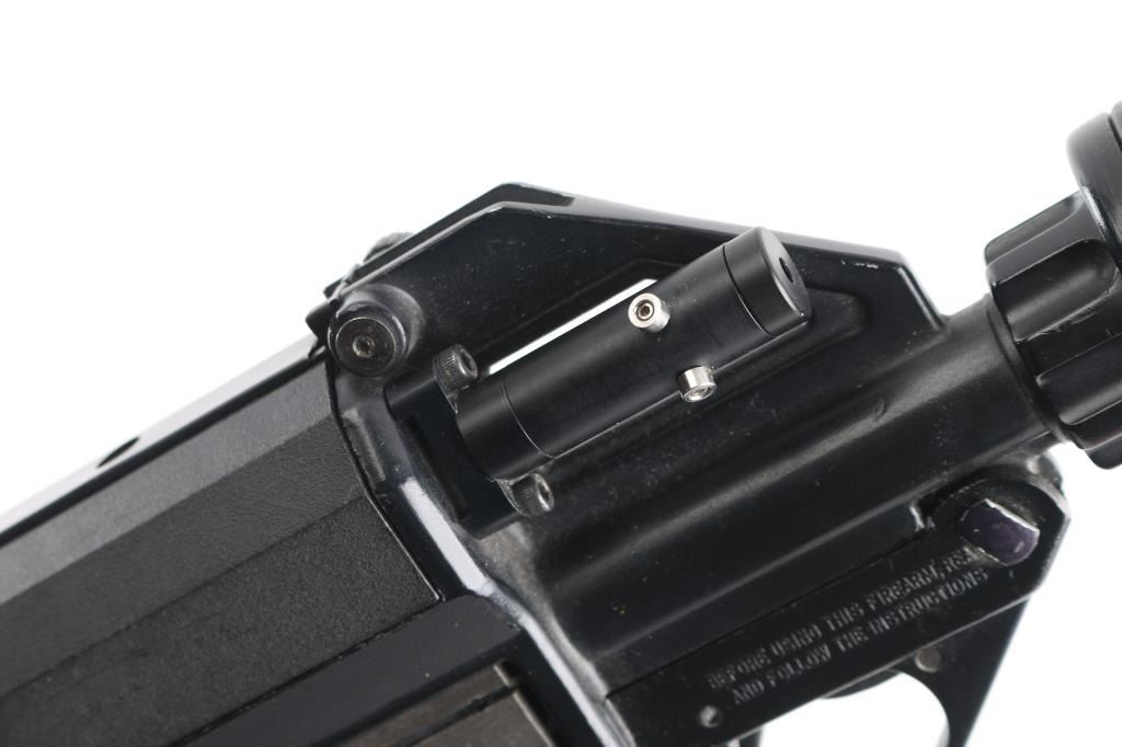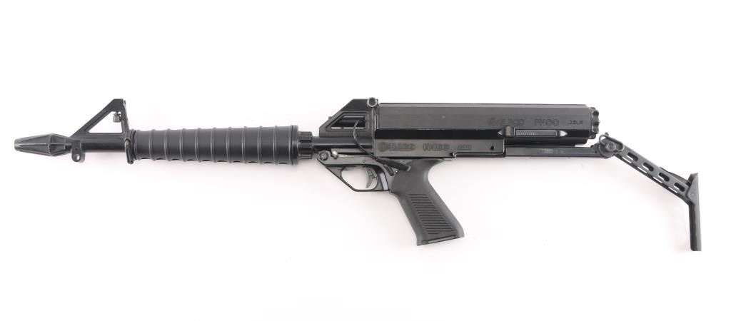 Sn: A001101 Tactical carbine rifle. Delayed blowback 22lr. 16 inch barrel, matte black finish, aluminum receiver, poly furniture. 100 round helical feed mag. telescoping and folding rear stock 36 inch length overall 30 inch folded. Ambi safety with adjustable sights. Bore is very good. Retains 90% of finish. Laser mounted but not tested.