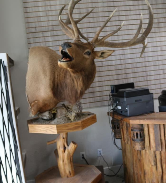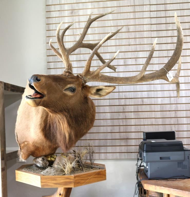 Lot 607 Elk Taxidermy Shoulder Mount on Pedestal