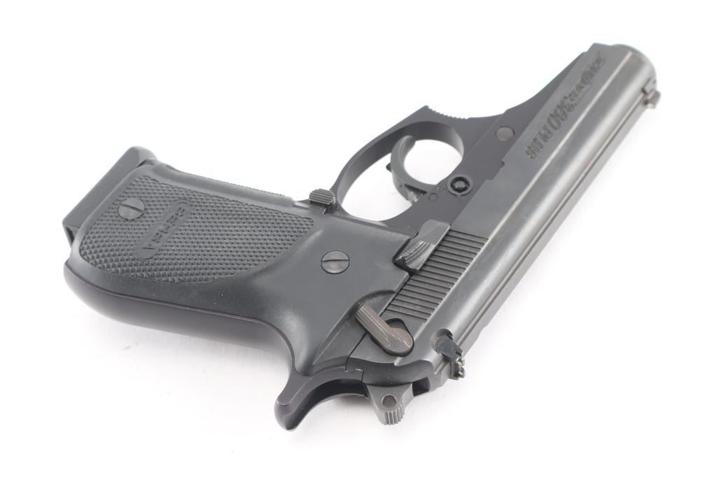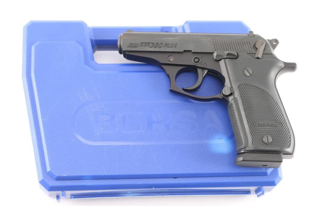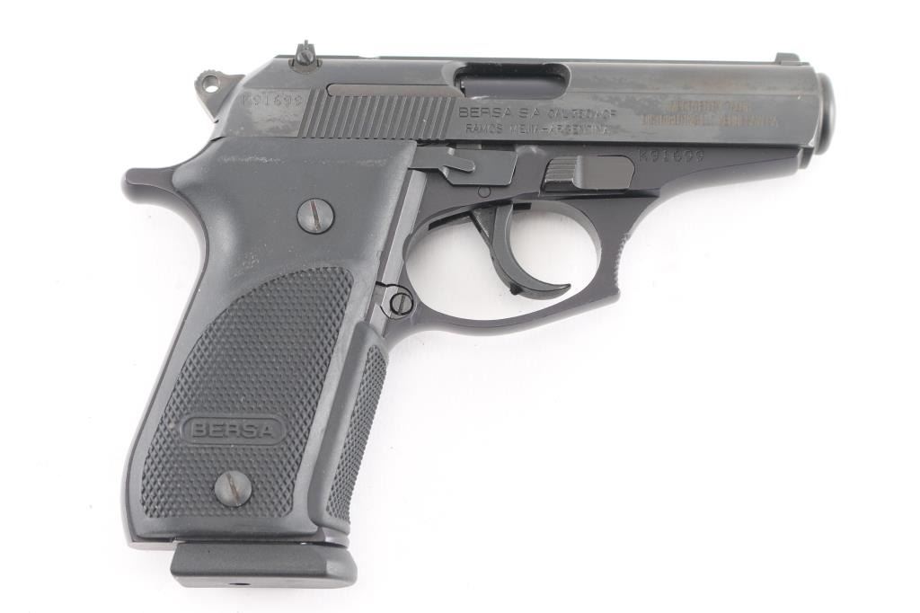 SN: K91699. The plus has a longer, & thicker grip, about 1/4". Manufactured in Argentina and Imported by Talon, Kennesaw, GA. with import stamp on the right side of the slide, this is a DA/SA, semi-automatic compact pistol chambered in .380 Auto. Features a matte black finished slide with knurled top rib, 3.5" barrel, fixed white dot front sight, windage adjustable two dot rear sight, smooth trigger, serrated round hammer spur, manual safety/decocker on the left side of the slide, magazine disconnect safety, push button magazine release, with finger rest floorplate, matte black finish alloy frame with internal key lock safety & serrated grip straps. Comes with a soft side foam lined hard case from Bersa, owners manual for the gun,key for the safety lock. Gun looks like new. Metal finish looks great with almost no sign of use or handling. Grips look great. Bore excellent/bright. One 7-round magazine.