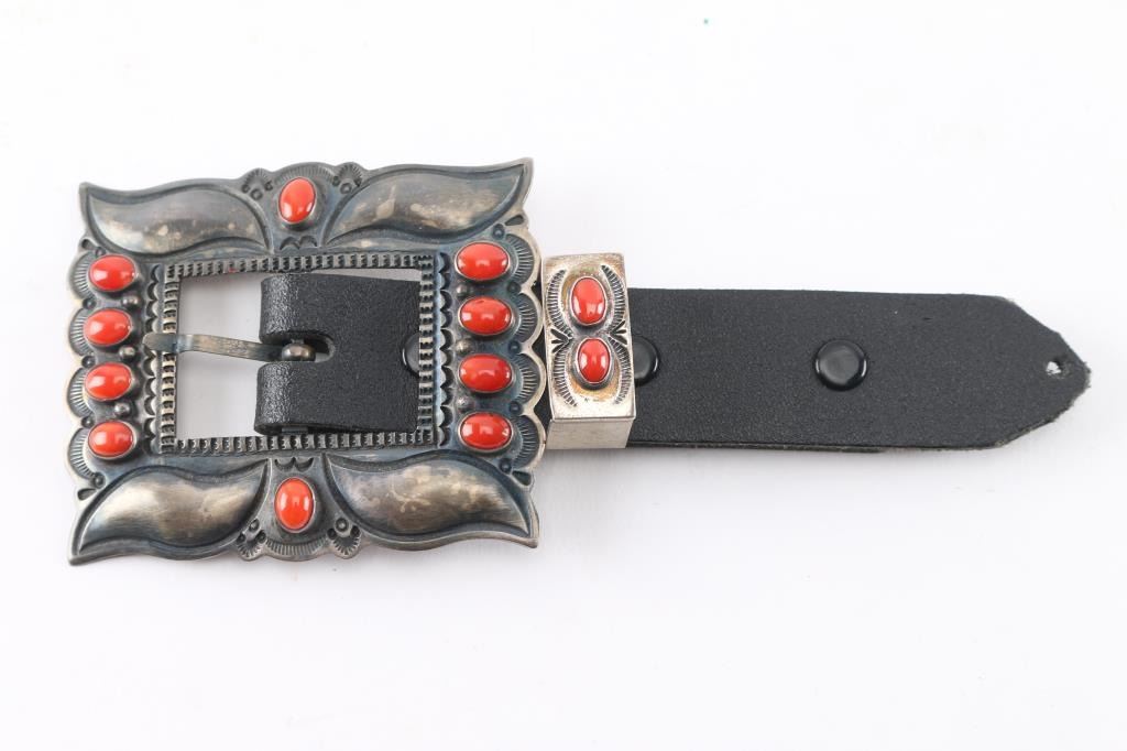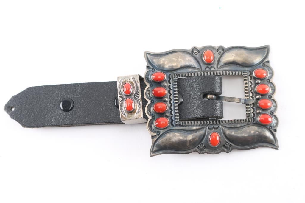 (1) Native Coral and stamped buckle and keeper D. Reeves marked