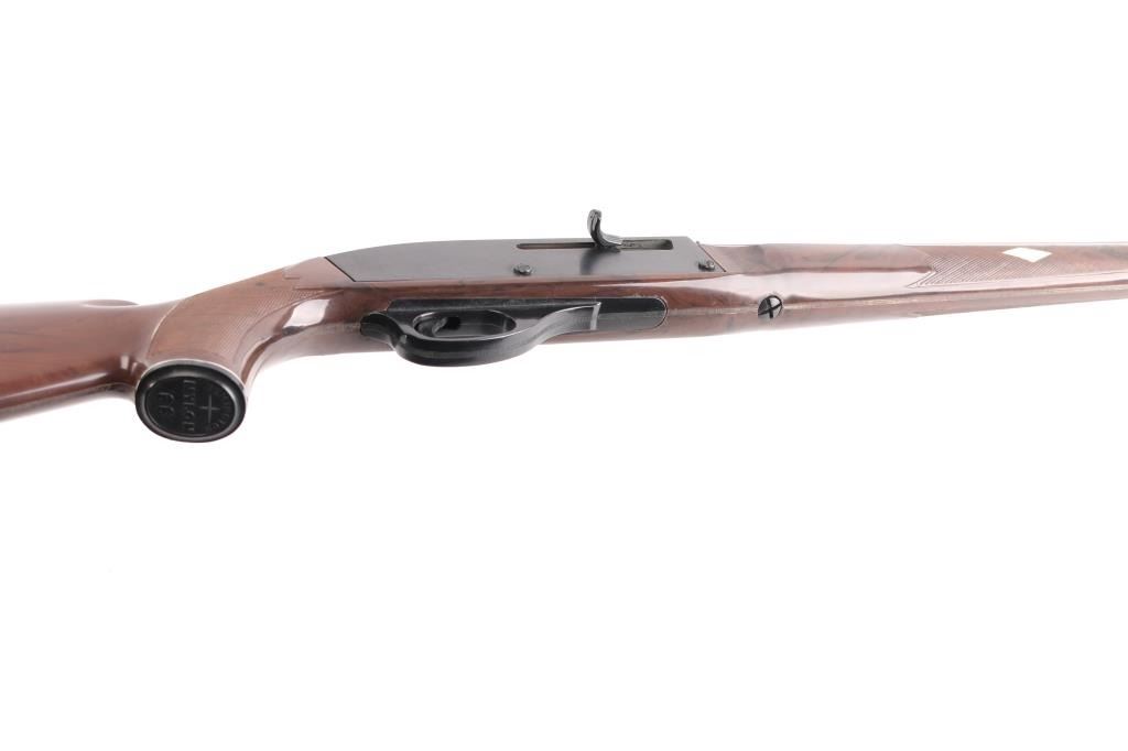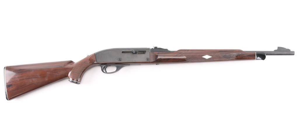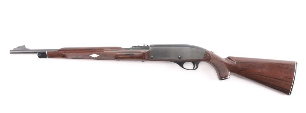 Semi-automatic rifle in fine overall condition with a 19” barrel. Features buckhorn type sights, tube magazine in buttstock, manual safety. Receiver slotted for optics. The metal surfaces retain nearly all of the factory blue finish. The checkered plastic stock is in very good condition with sharp checkering and light scratches. The bore appears excellent, but needs cleaning, the action is crisp and the markings are sharp. Produced 1959-87.