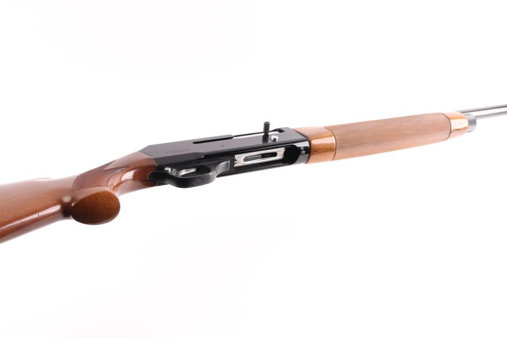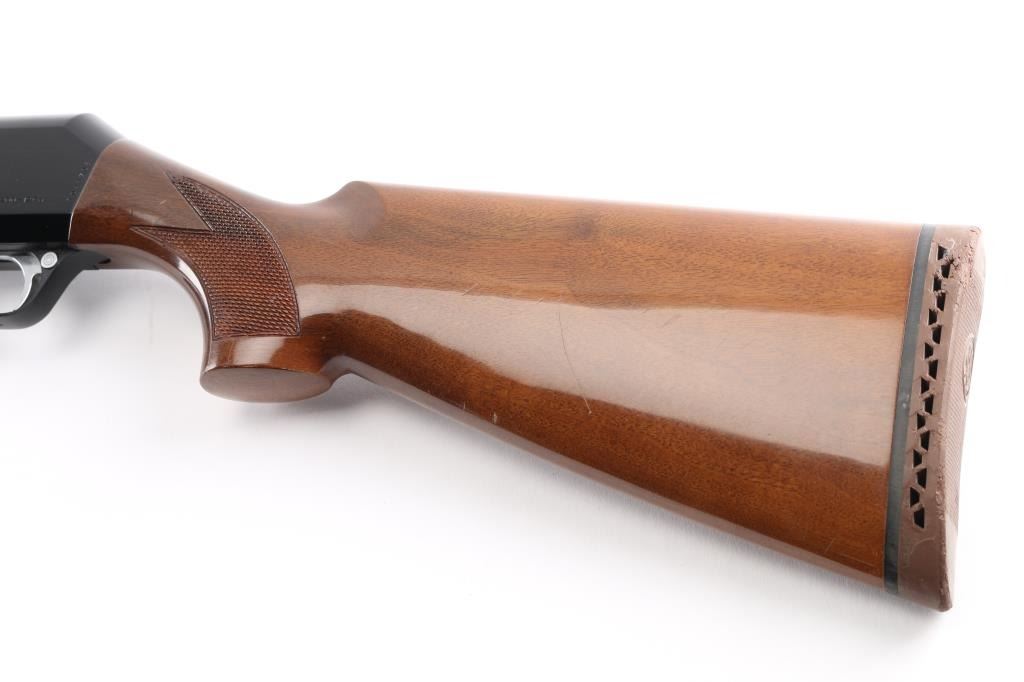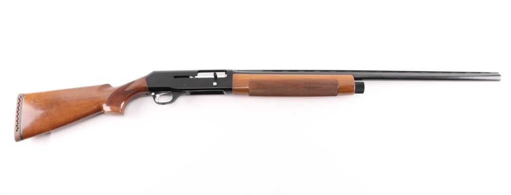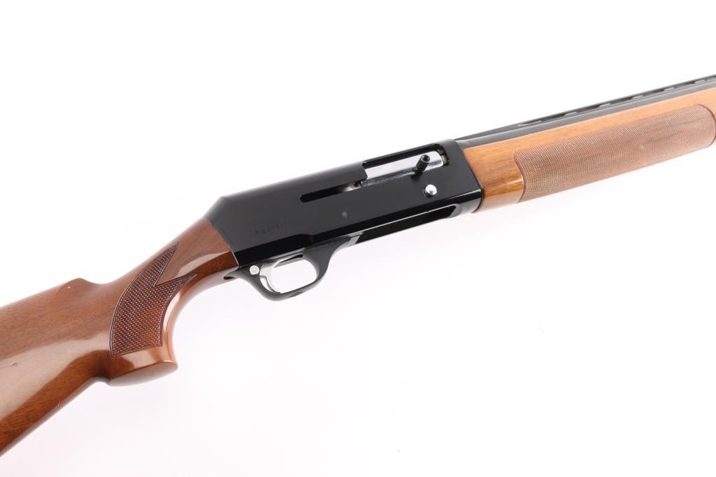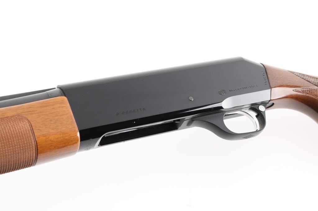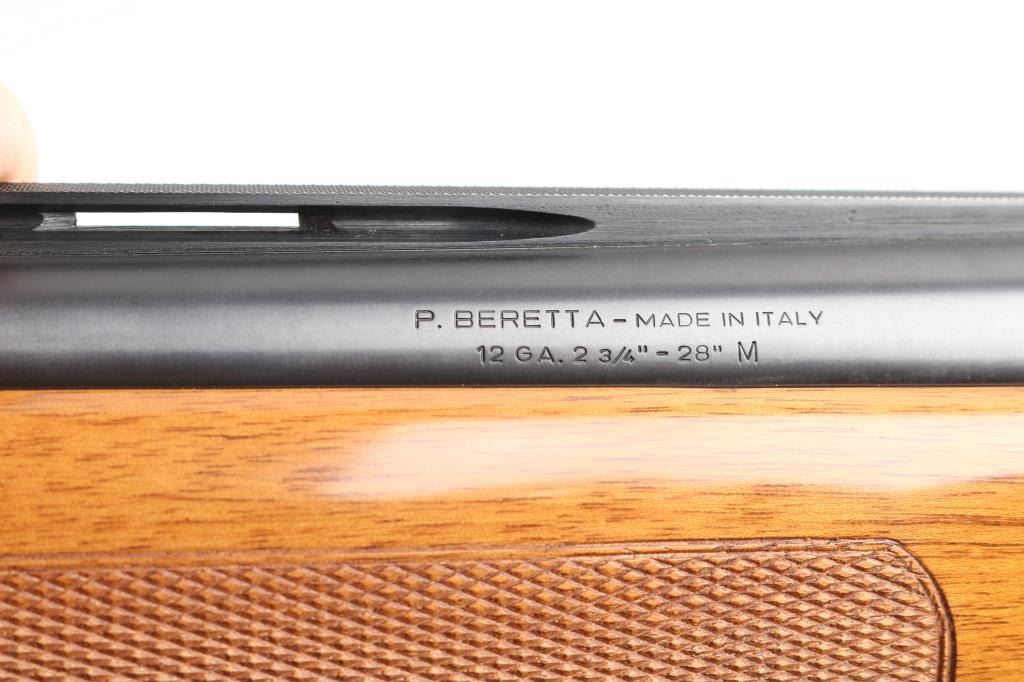 Italian semiautomatic shotgun imported by the Berben Corporation, circa 1985. Accepts 2-3/4" shells. Features 28" vent rib barrel with MOD choke, steel bead front sight, checkered walnut forend & semi pistol grip stock, ventilated rubber buttpad, push button safety. Metal finish is blued, black on alloy receiver & triggerguard. Bore is very good bright condition. Retains 95% finish with minor handling marks, a thin scratch on receiver. Wood stocks are very good with a few creases.