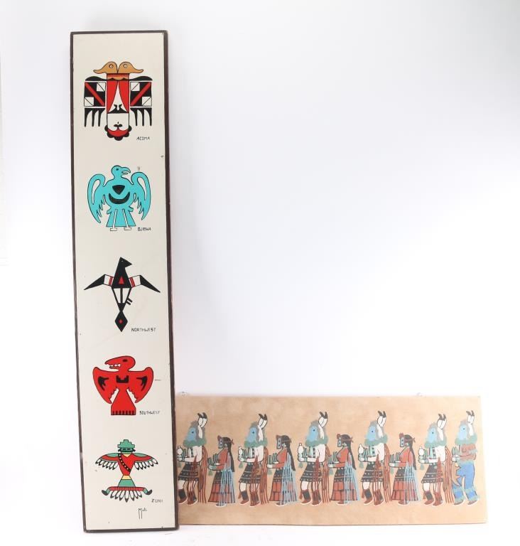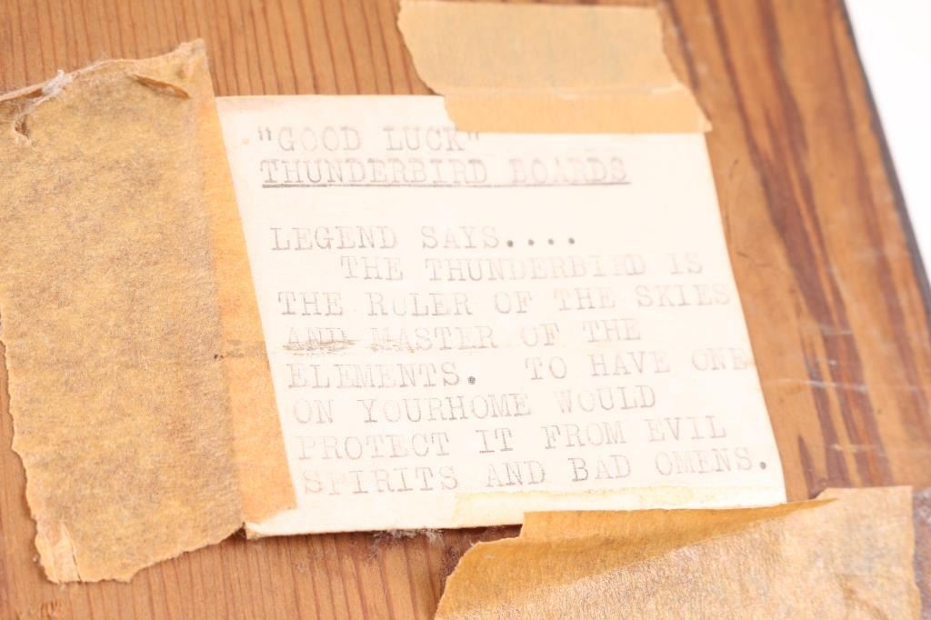 (1) Painted wood with primitive kachina "Good Luck Thunderbird Board" 48"x9"
