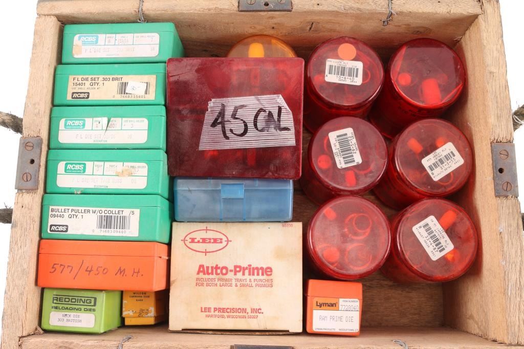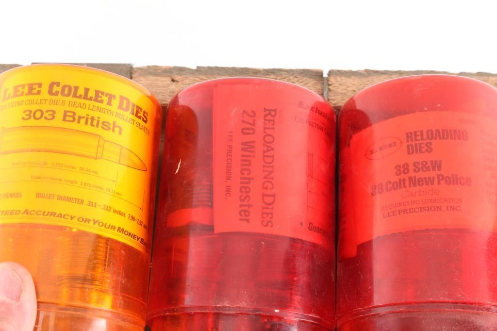 Includes RCBS sets for .303 British, .30-06 & 7.62 Russian; Lee sets for .38 S&W, 270 Winchester, .303 British, 30 M1 Carbine, 45 ACP & 455 Webley. A Lyman set for 577/450 M.H.