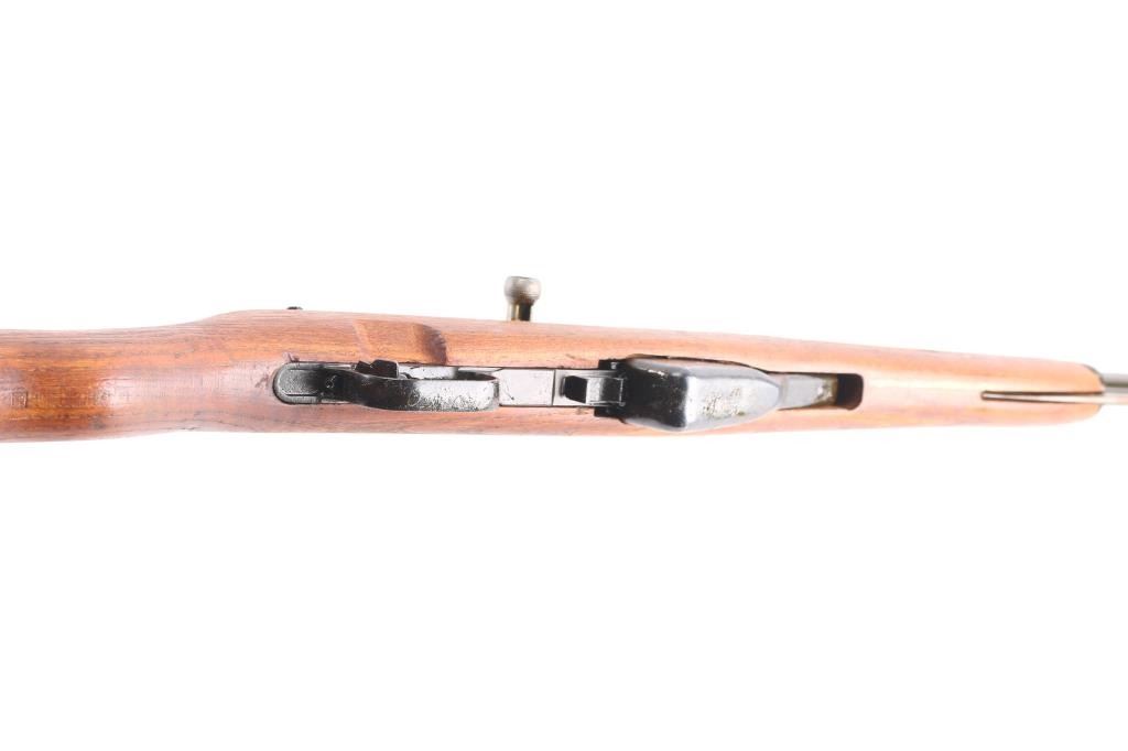 Zastava M59 PAP, also known as Papovka, is a Yugoslav licensed version of Soviet SKS semi-automatic rifle.'Mdl 59' Yugoslavian made gas-operated semi automatic rifle chambered in 7.62x39mm. Imported by CAI, right barrel. Features a blued finish, 20.5" barrel, hooded post front sight, tangent rear sight graduated to1,000 meters, cleaning rod, folding blade bayonet, manual safety, smooth trigger, fixed 10 round magazine, smooth wood handguard, pistol grip shoulder stock and trapdoor metal buttplate. Matching serial numbers on the receiver, bolt carrier, magazine, and stock. Rifle is coated with cosmoline from storage. Rifle retains approximately 96% of it's blued finish, with some minor edge wear, scratches/rubs, bore appears good/bright, some frosting in the grooves, good rifling, may improve with cleaning, and wood stocks are good+ with several minor dings & gouges. Serial numbers puts it at pre 1967,