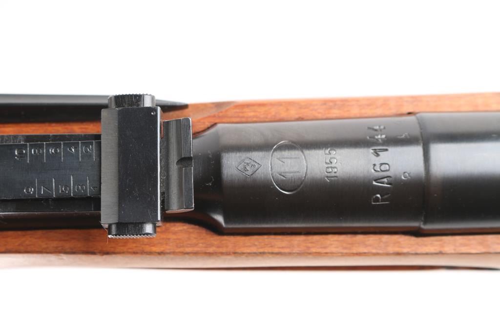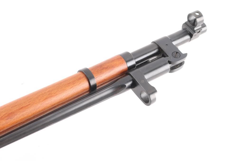 Unissued Polish KbK WZ44 Military carbine. Considered the finest of all M44 carbines produced, produced from 1950-1955. with a total of 343,000 manufactured, They follow the same pattern as the Russian models, with minor differences. Well made by Radom. ("11" in circle marked on receiver ring) along with the manufacture date of 1953. Fed from a 5-rd fixed magazine with hinged floorplate. Blued metal finish, with smooth, straight blonde wood stock, and handguard. Chrome bolt, and cleaning rod. Integrated side-folding cruciform bayonet. 20 1/4" barrel, with hooded elevation adjustable front sight post. Adjustable tangent rear sights. Serial numbers match on chamber, bolt, magazine floorplate, and blue steel buttplate. Blued metal finish is at least +99%. Wood is excellent, . Imported by CDI, marked on the left receiver rail, very faint. Bore is pristine. Action is smooth/tight.
