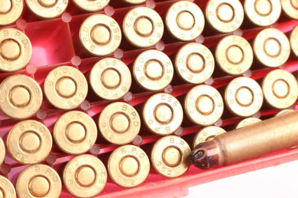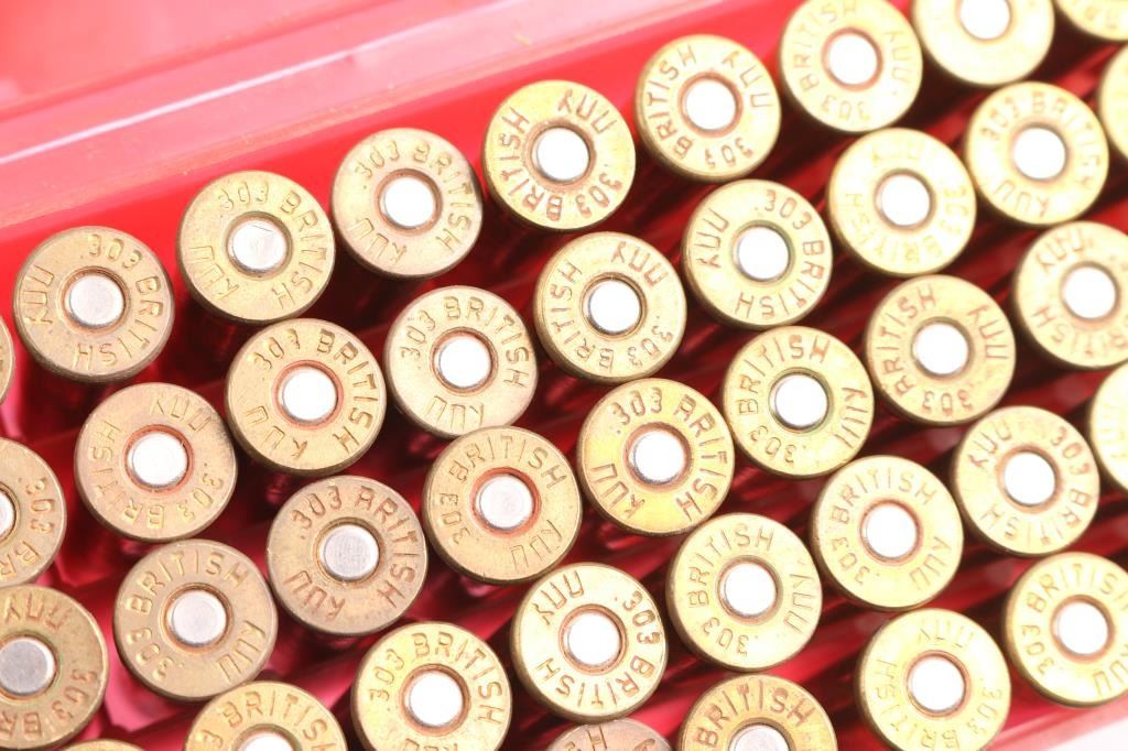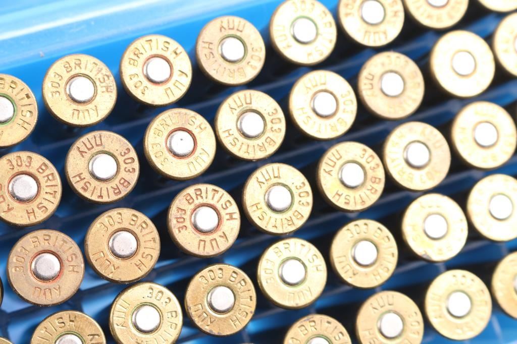 Approx. 400 rounds of .303 British factory new ammunition, including 50 rds of Blanks. Appears to be some Iraqi & other brands. In plastic cases of 50 rds. All in wooden crate.