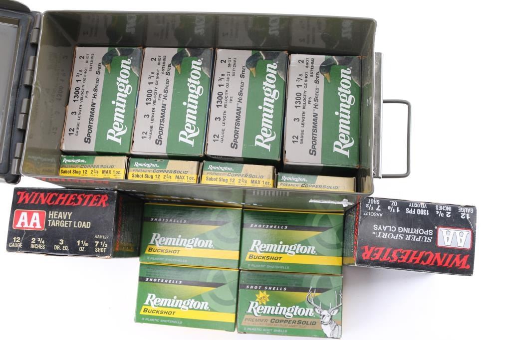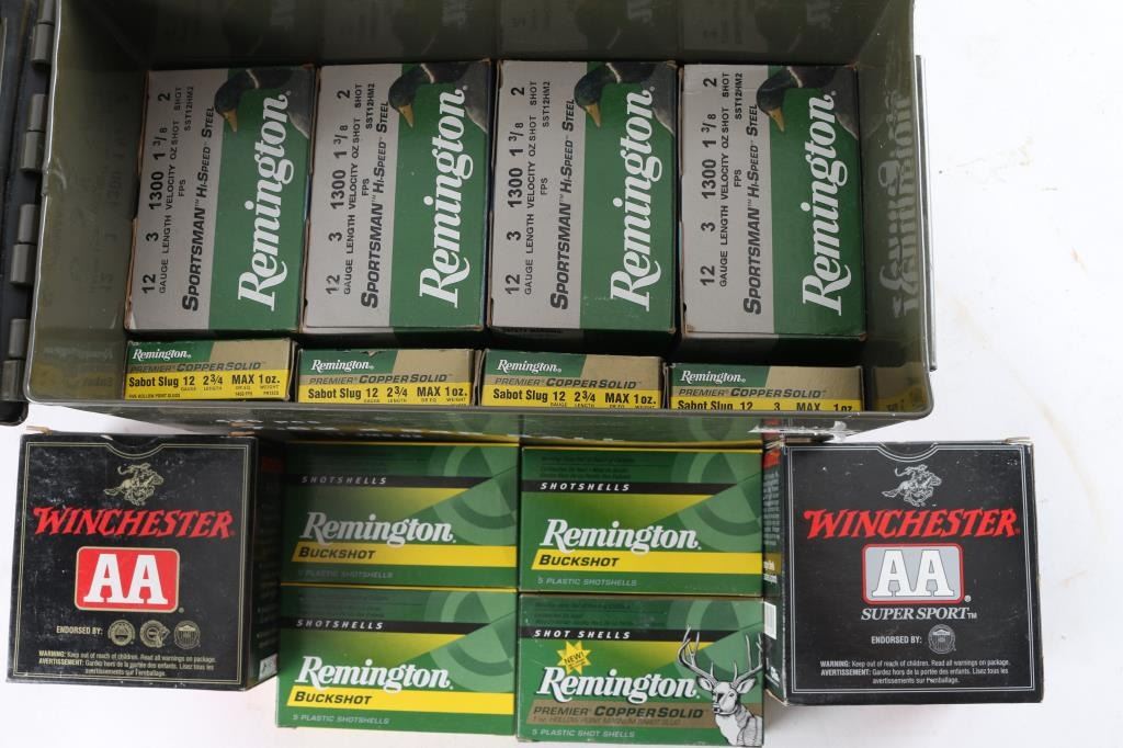 Approx. 190 rounds of 12 Gauge factory new ammunition. Remington & Winchester, various chamber and shot sizes.