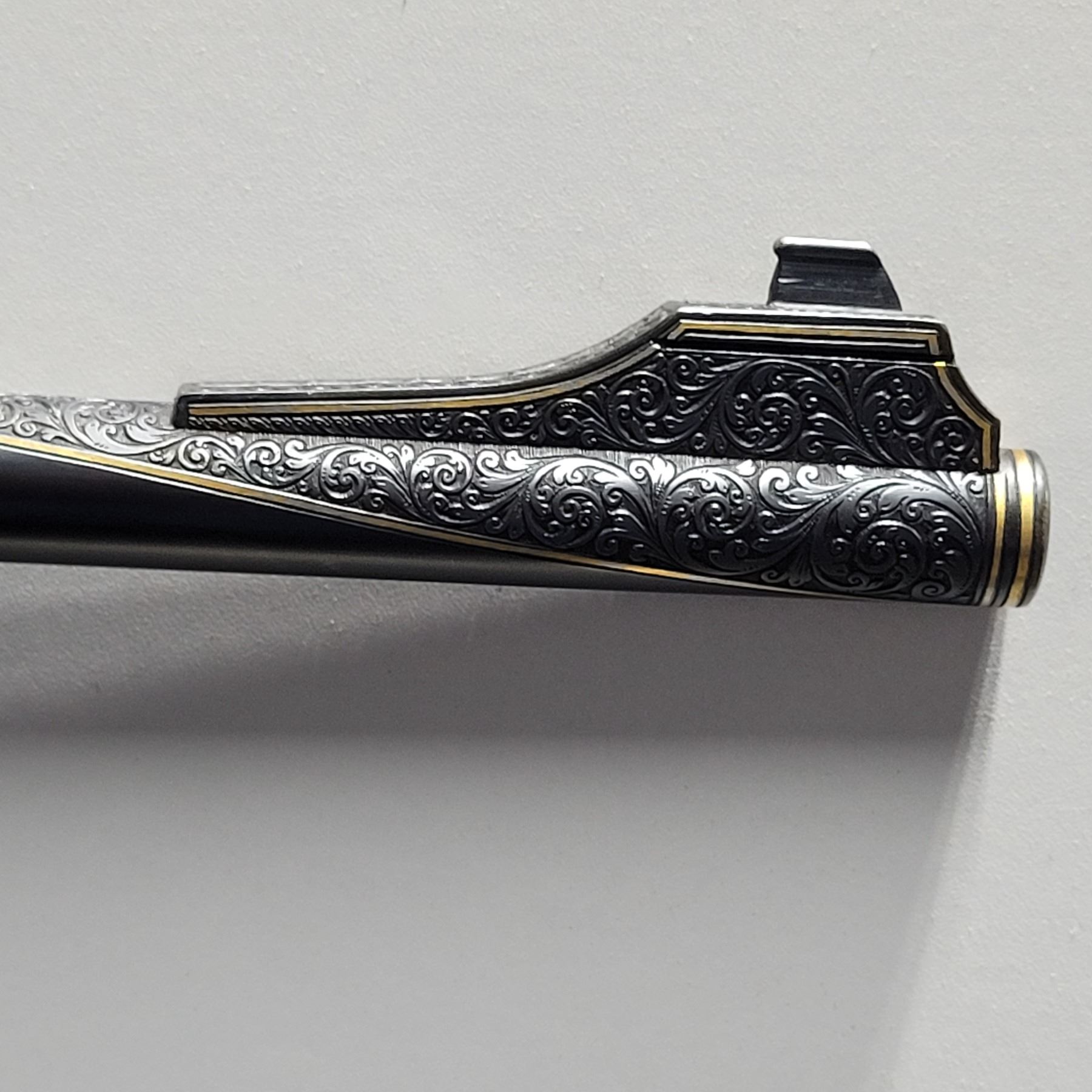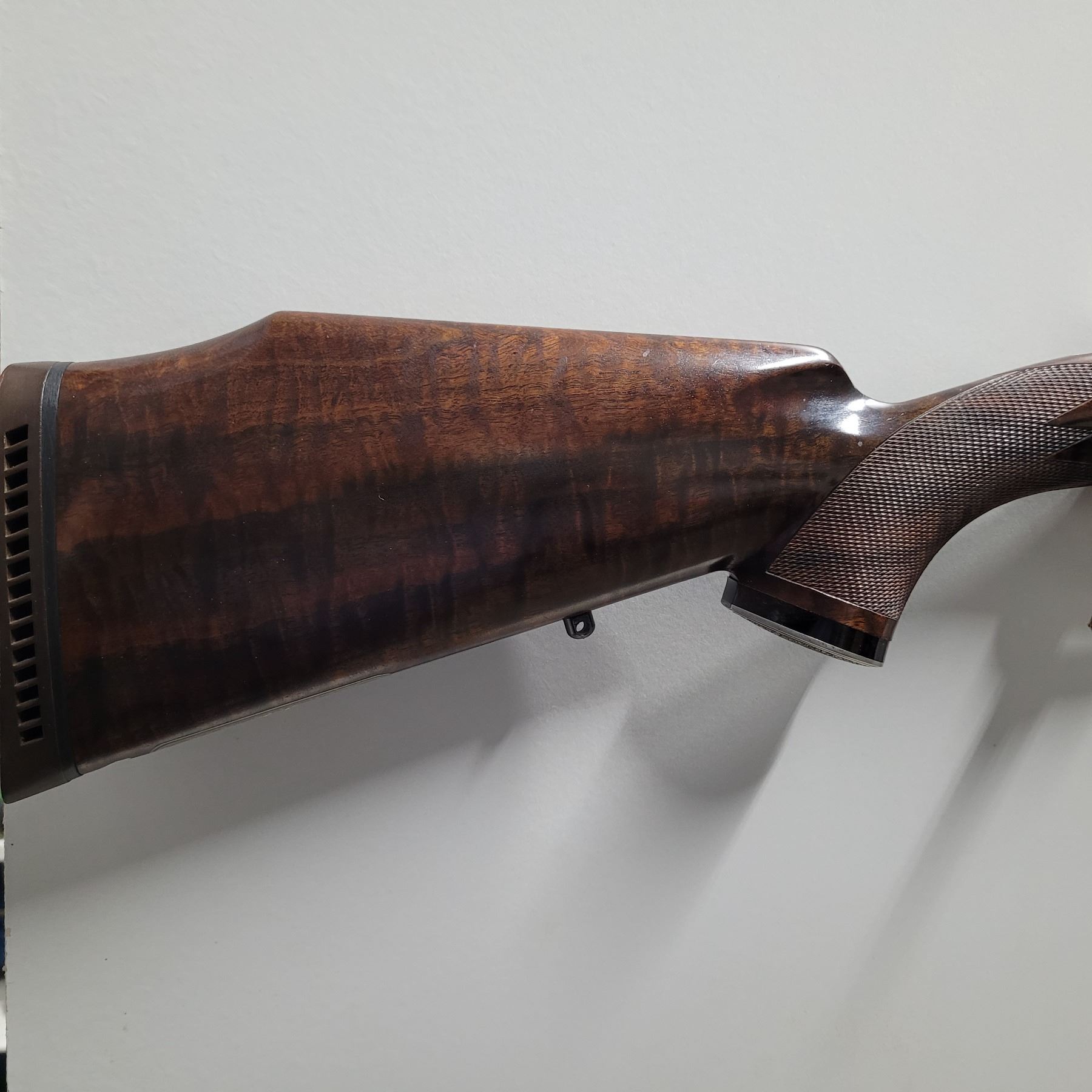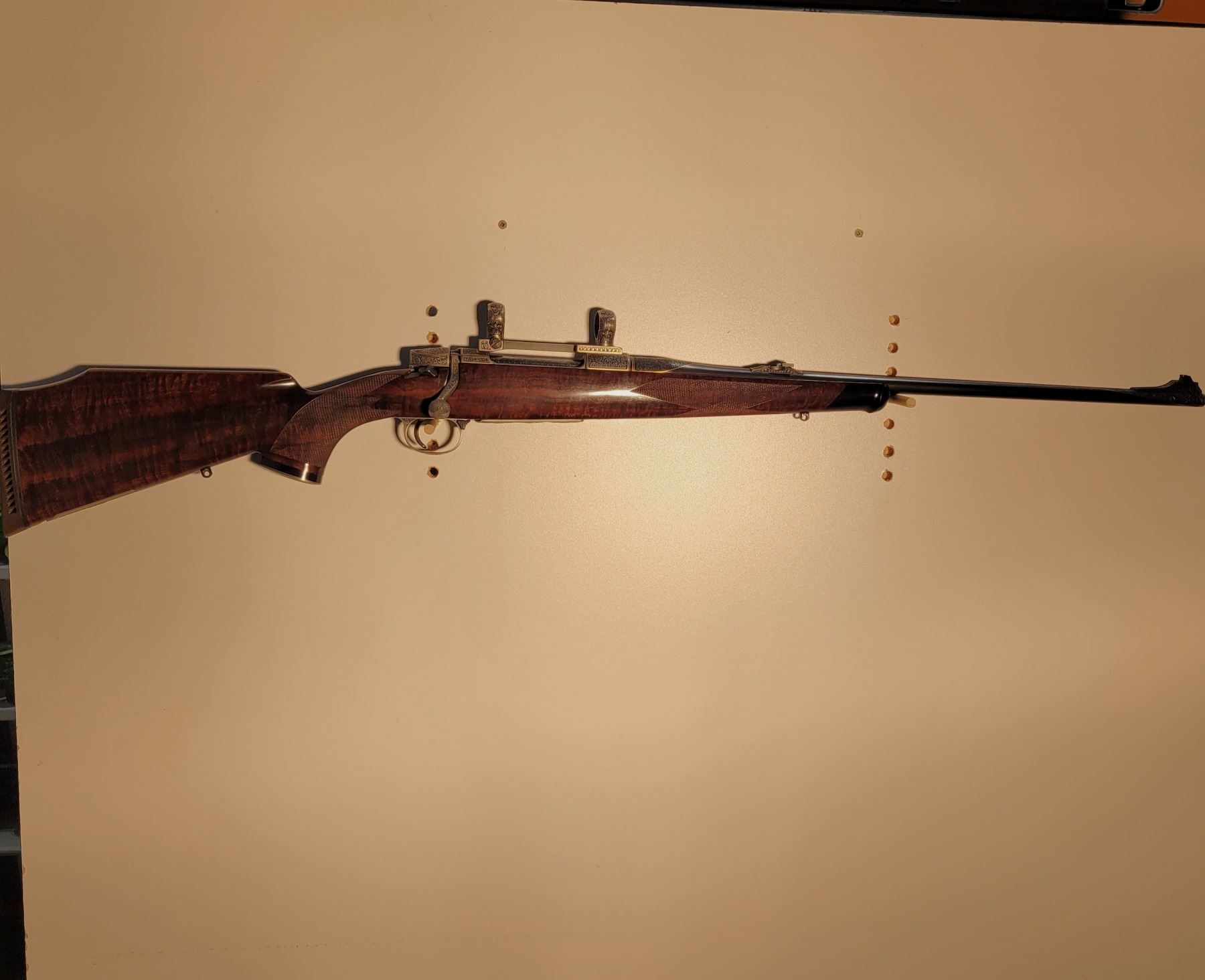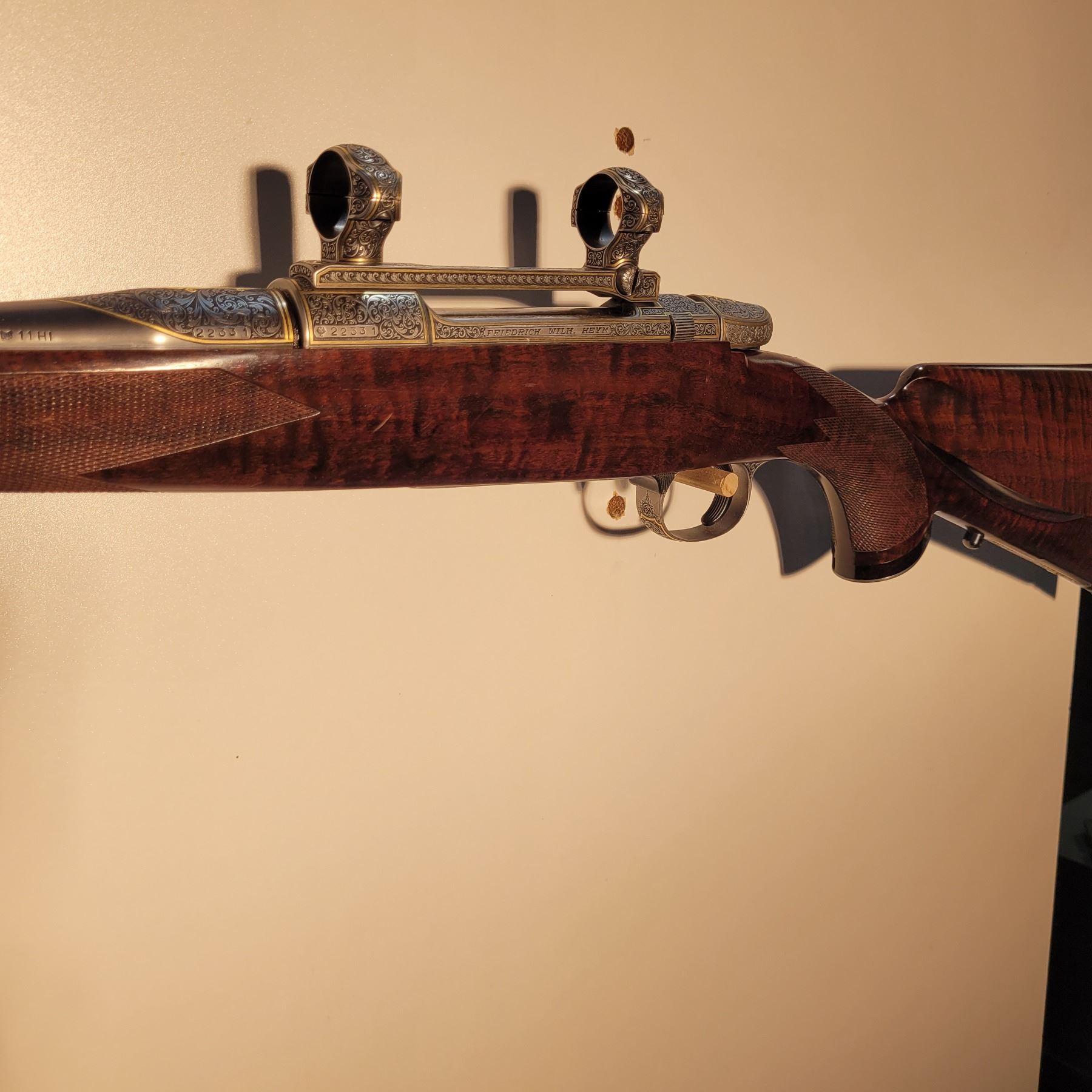We are fortunate to offer this Heidi and Klaus Hiptmayer custom rifle. Heidi was born in Austria and was a Ferlach trained engraver and worked with her husband in Quebec and British Columbia, Canada. Klaus Hiptmayer built fine firearms and was a renown stock maker who only used hand tools to build the stocks. Both Heidi and Klaus were master craftsman who are no longer with us. This is your chance to purchase a masterpiece in wood and metal.
